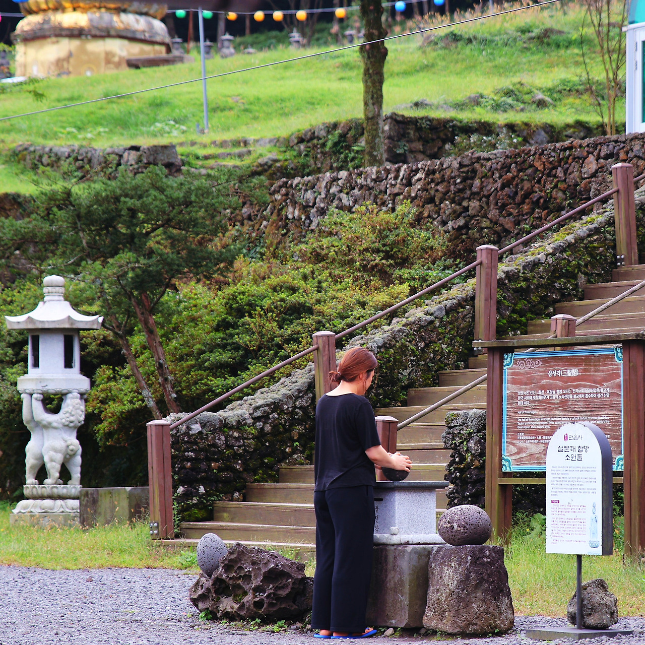 꽤 오랜 시간 천천히 걸어 보았습니다. 때맞춰 내가 미안하다는 남편의 카톡이 왔고요. 이게 내가 사과를 받아야 할 일은 아니구나라는 생각이 들면서 참 부끄럽게 느껴졌습니다. 혹시라도 무작정 비행기를 타고 제주도까지 왔다는 말을 하면 화를 내지는 않을까 잔뜩 긴장하면서 전화를 걸었습니다. 괜히 민망하기도 해서 관음사에 얽힌 이야기들을 주저리주저리 읊어댔고 아무말 없이 그 긴 이야기를 듣던 남편은 대웅전 앞에 있는 설문대 할망 소원돌에게 소원 하나 빌고 오라고 하더군요.