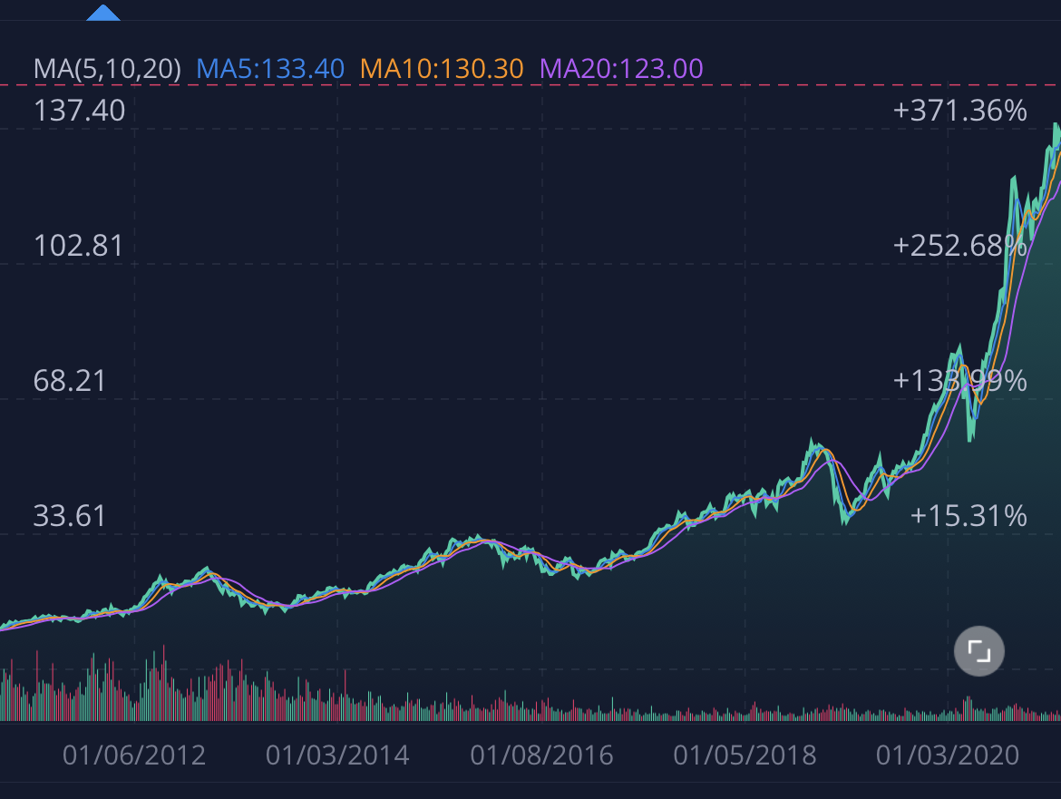 이것은 우리가 장기적으로 꾸준하게 매수를 하기 때문입니다. 이번 달에는 한 주에 45달러에 샀지만 다음 달에는 30달러에 살 수도 있고 그 다음 달에 50달러에 살 수도 있습니다. 우리는 그 때마다 꾸준히 사서 장기적으로 평균단가를 만들어 갑니다. 45달러에 한 주를 사고 30달러에 한 주를 사고 50달러에 한 주를 사면, 평균단가는 41달러가 됩니다. 앞으로도 꾸준히 사면서 평균을 맞춰가면 됩니다.