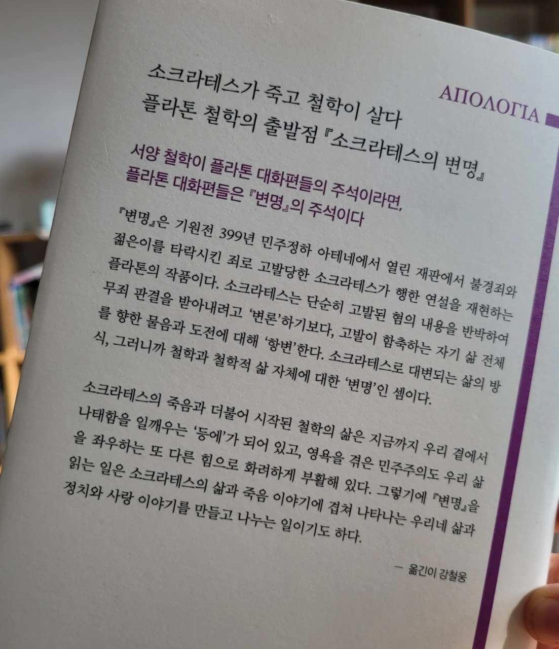 강철웅 역자가 옮긴 플라톤의 <소크라테스의 변명>(아카넷,2020)