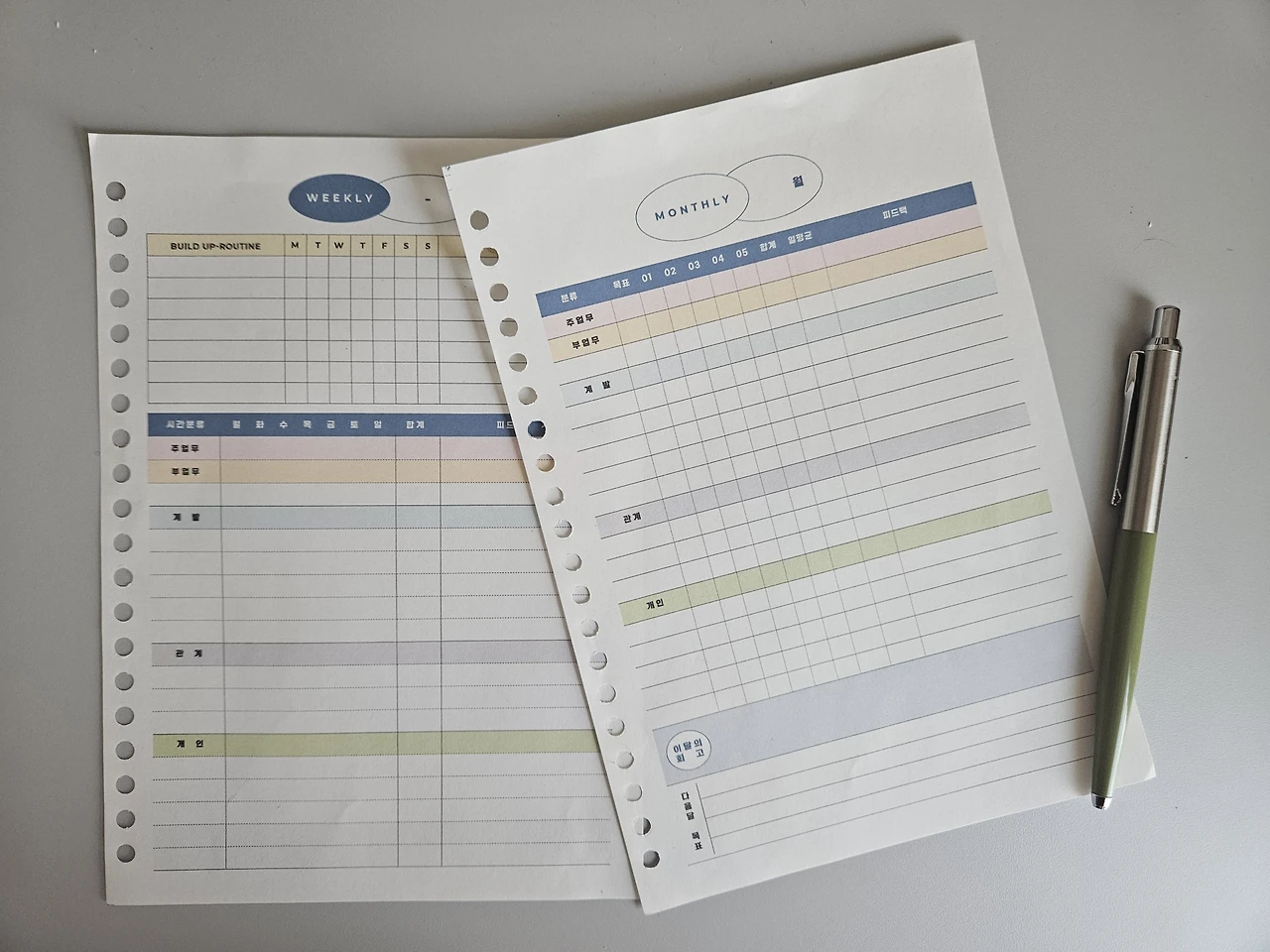 처음으로 내 하루를 시간 단위로 기록을 해봤던 첫 달이었다. 첫 두 달은 내 생활에서 주업무와 부업무를 정의하고 일상 속에 어떤 루틴, 습관을 넣고 싶은지 계획하고 어떤 방법이 동기부여가 잘 되는지 시도하면서 실험적인 달을 보냈다.