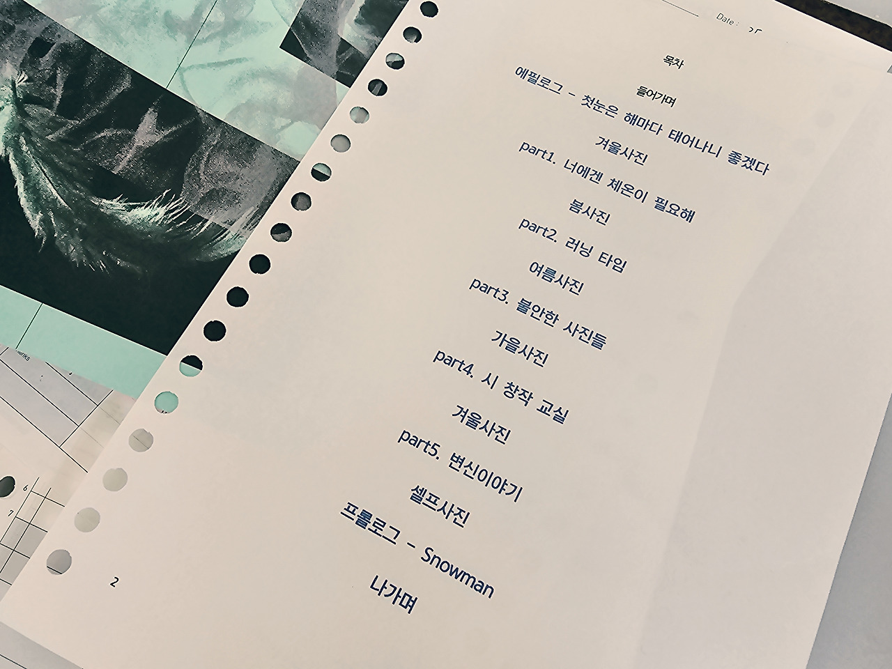 어제 퇴고를 마친 원고를 목차대로 정리했다. 날짜순으로 배열할까 주제별로 모아볼까? 고민했는데 날짜는 나한테나 의미가 있지, 읽는 사람에게는 주제별로 모아보는 것이 가독성을 높이고 집중력을 올릴 수 있을 것 같았다.