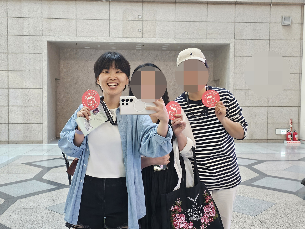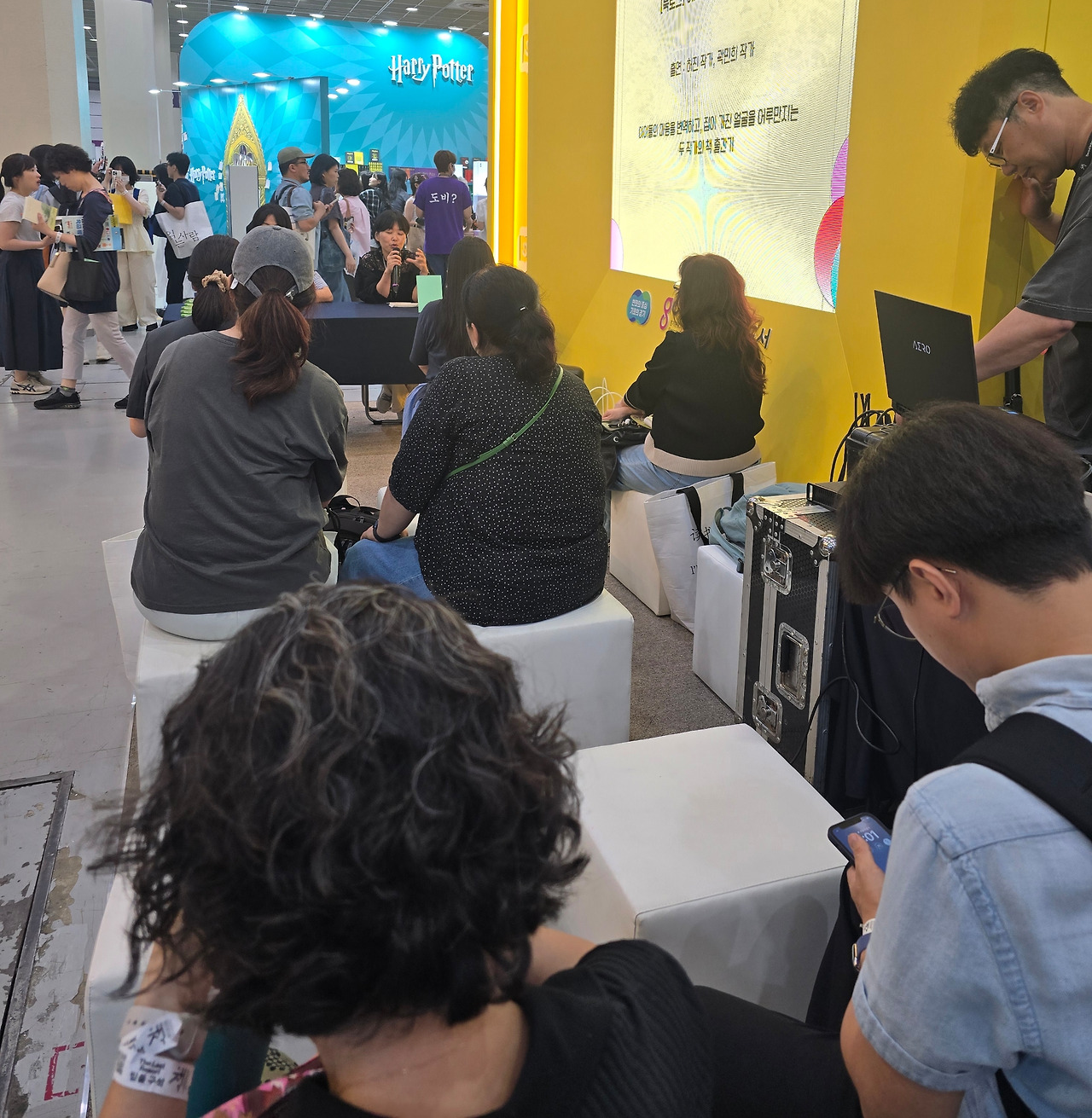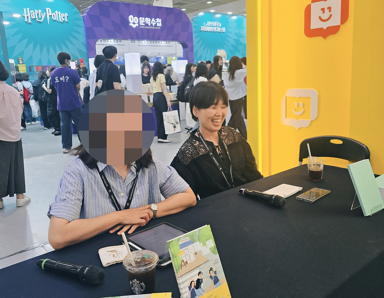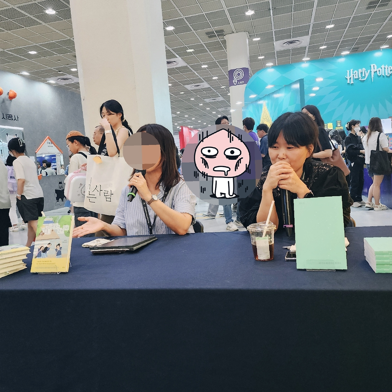 "제가 사실 책 출간도 처음, 북토크도 처음, 도서전도 처음인데... 이렇게 사람이 지나다니고 정신없는 공간에서 첫 북토크를 하게 될 거라 상상을 못 해서 지금 완전히 길을 잃은 상태입니다. 여러분. 다행히 옆에 계신 작가분께서 제가 망친 것들을 모두 살려내주고 계시고요. 그래서 엄청 감동 중이고 너무 든든합니다."