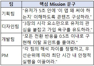 디자인팀 → “3장의 시각 요소로 사용자의 이목을 끌어라”