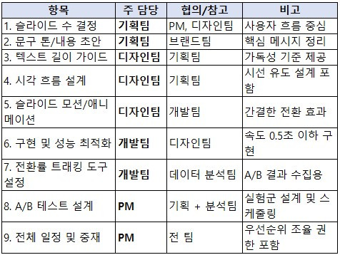 개발팀 → “모든 전환 반응은 0.5초 이내 구현하라”