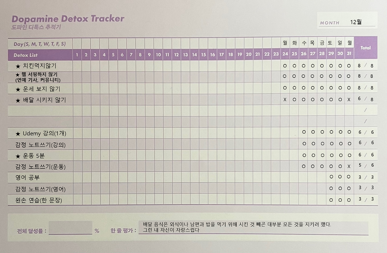 집중력도 유지할 힘도 없는 도파민 중독자에게 꽤나 많은 숙제들입니다. 처음엔 너무 많은 숙제를 내 준 것 아닐까 고민하다가 '일단 해보자. 너무 힘들면 다시 조정하자'라며 토닥였습니다. 그리고 힘들 때, 이런 루틴이 버거울 때, 또는 문득 드는 부정적인 생각들, 무기력하거나 불안한 감정이 들 때마다 기록하며 감정들의 원인이 무엇인가 분석해 보기로 하였습니다.