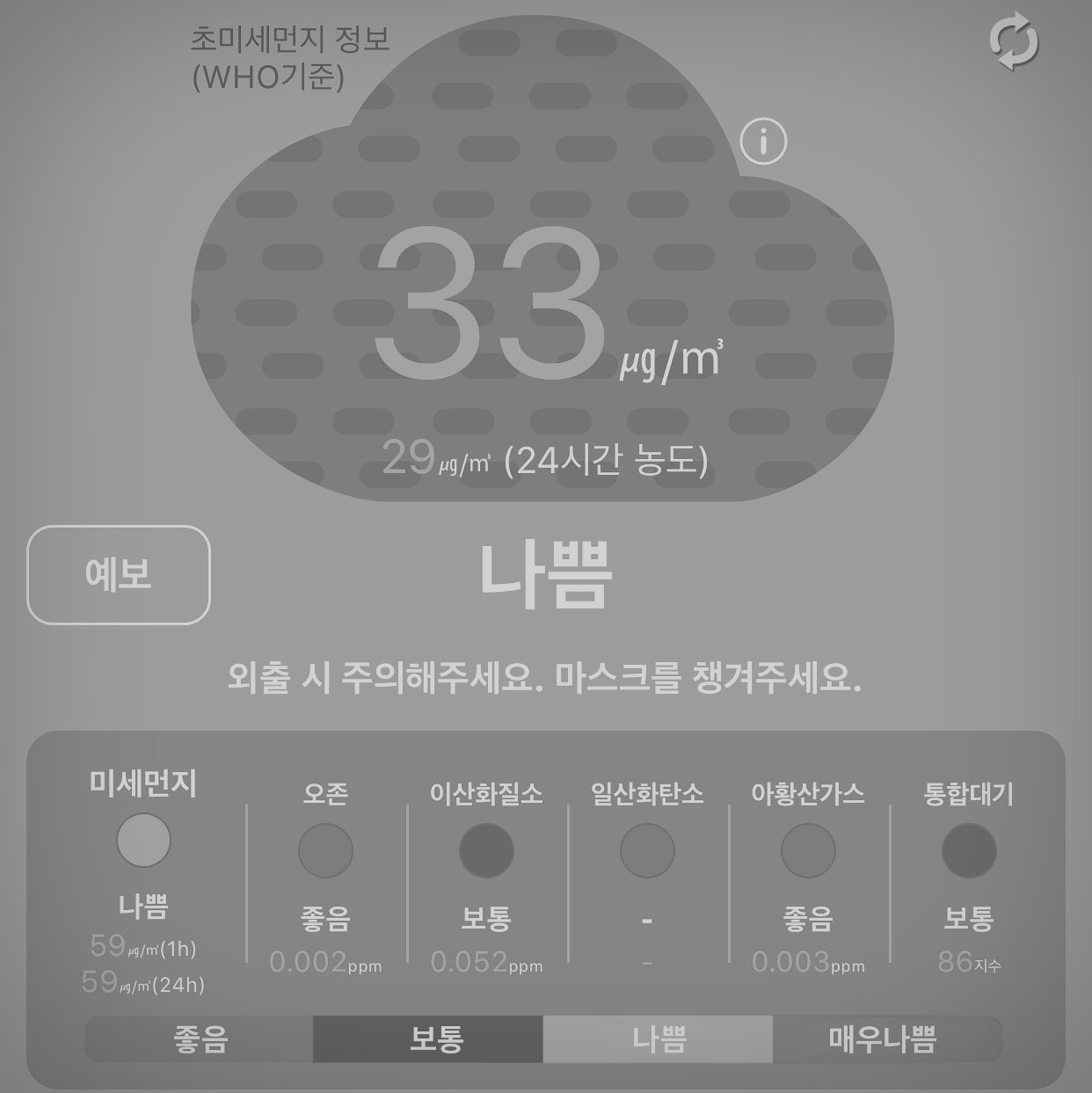 요 며칠 내 미세먼지 어플은 온통 시뻘겋게 뒤덮였다.