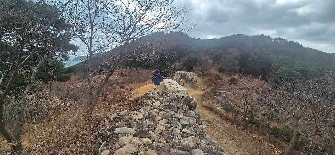 바람이 잦아지길 기다리며 구조라성으로 올랐지만 바람은 더 쎄게 일었다. 높은데서 바라보는 지세포 외항의 파랑은 유람선 운항이 취소된 걸 증명하는 거처럼 강하게 다가왔다.