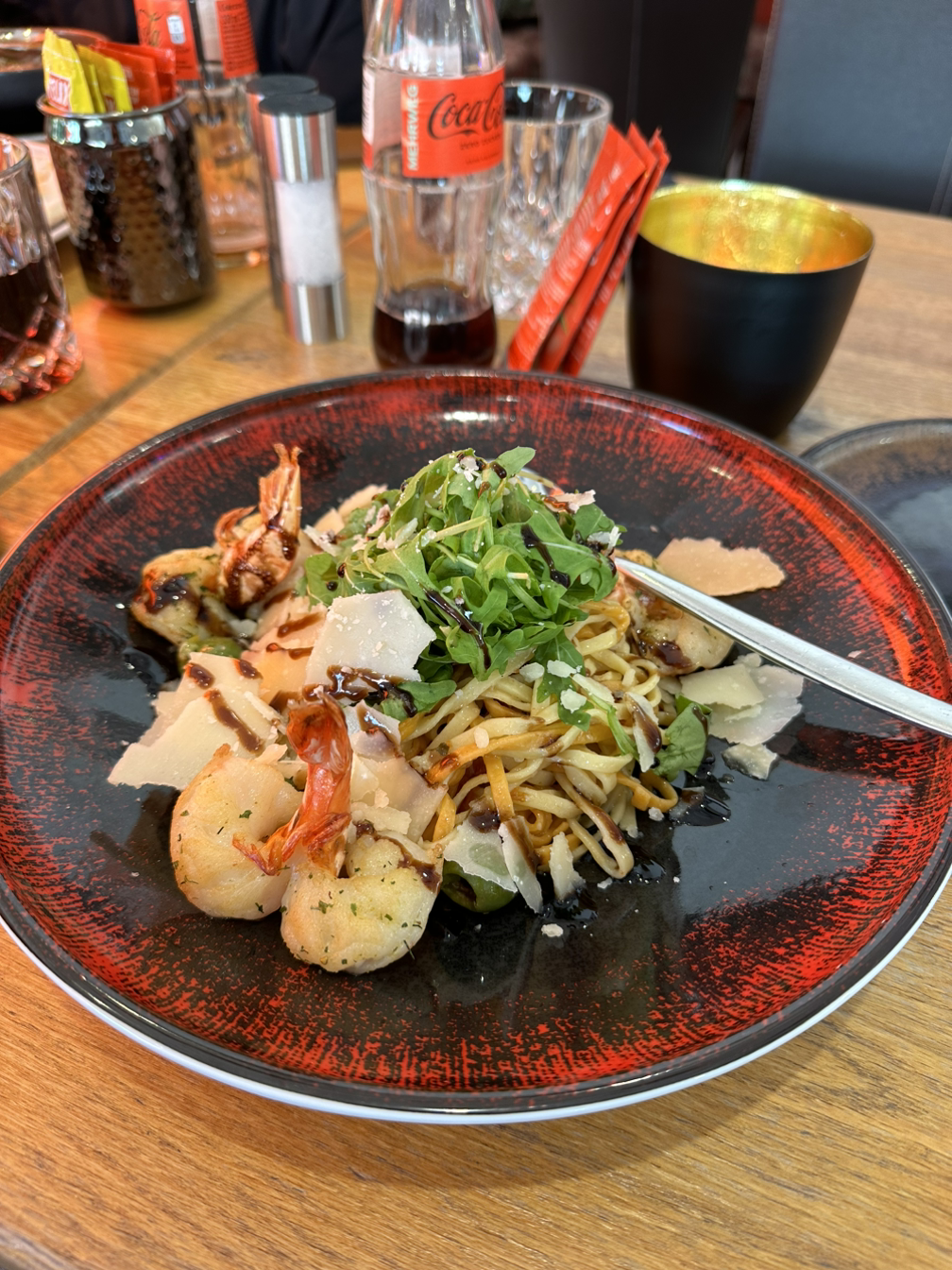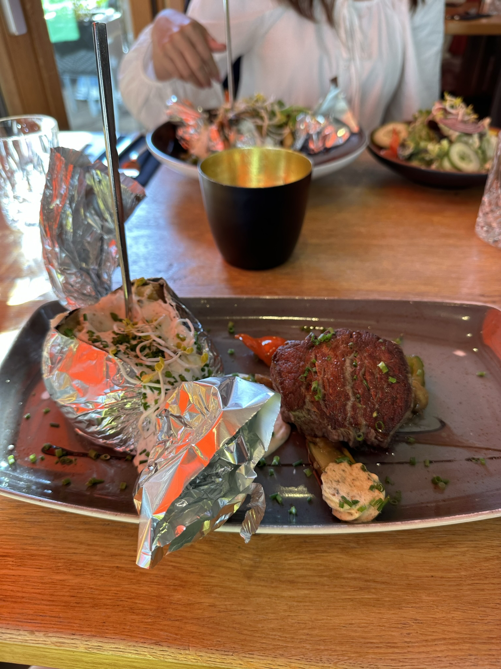 저녁 식사를 했던 곳이다. 음식이 맛있었고 양도 많았다. 직원들도 아주 친절했는데, 생각해 보면 이번 여행 중 우리가 갔던 음식점의 직원들이 모두 친절했다. 엄마와 아빠는 스테이크를, 남편은 파스타를, 동생은 소고기 누들 스프, 나는 구운 감자와 새우, 샐러드 한접시가 추가로 오는 채식 메뉴를 주문했다.