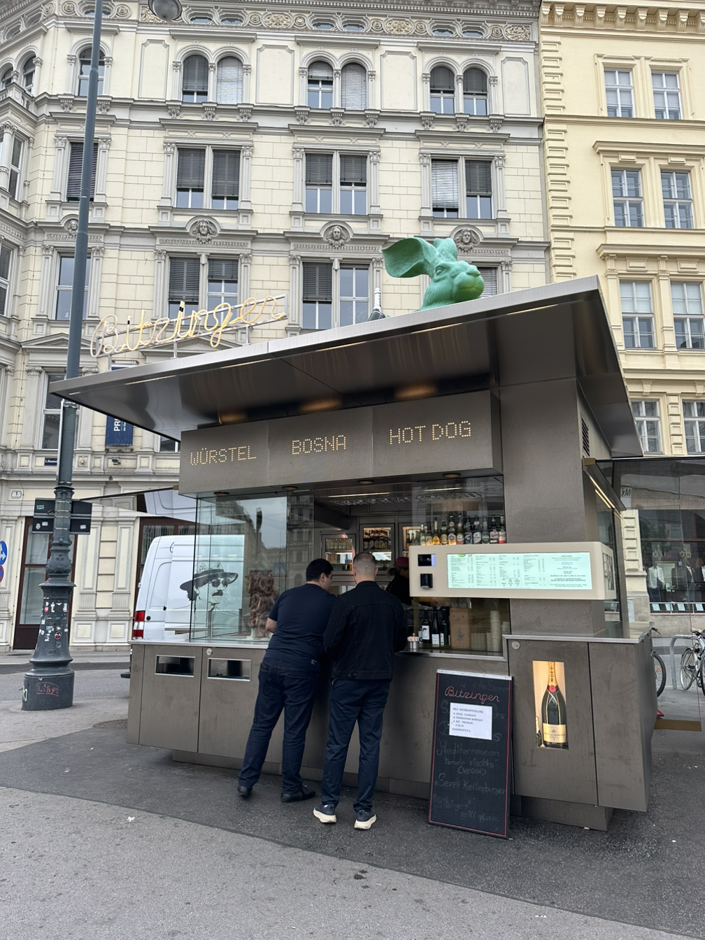 커다란 비엔나 소시지가 들어간 핫도그를 판매하는 핫도그 스탠드. 합스부르크 왕궁 정원에서 나와 길을 따라 걸으면 쉽게 발견할 수 있다. 소시지는 오리지널과 매운맛을 고를 수 있는데 우리 가족은 모두 매운맛을 골랐다. 맵찔이가 아닌데도 맵게 느껴져서 오리지널을 맛봐도 충분히 맛있을 것 같다.