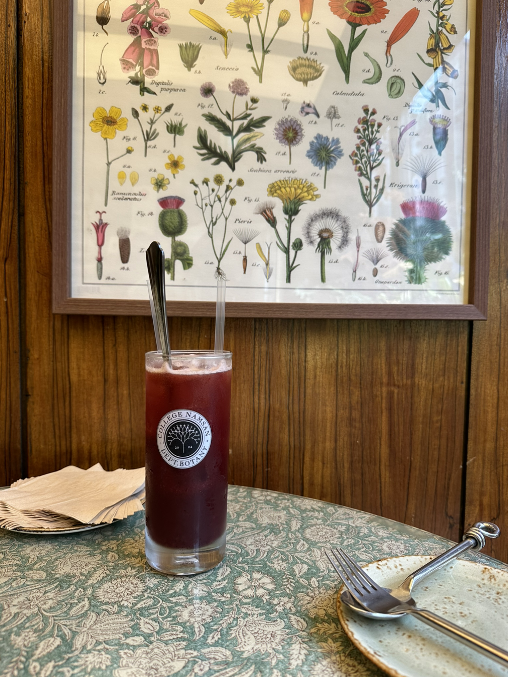 가장 먼저 나온 타트 체리 에이드는 잘게 간 체리가 들어가 있었는데, 음료를 마실 때 빨대로 빨려 들어와 씹히는 게 아주 마음에 들었다. 신맛은 거의 없고 적당하게 달았는데 음식과 맛이 강하지 않아 음식과 잘 어울릴 것 같았다.