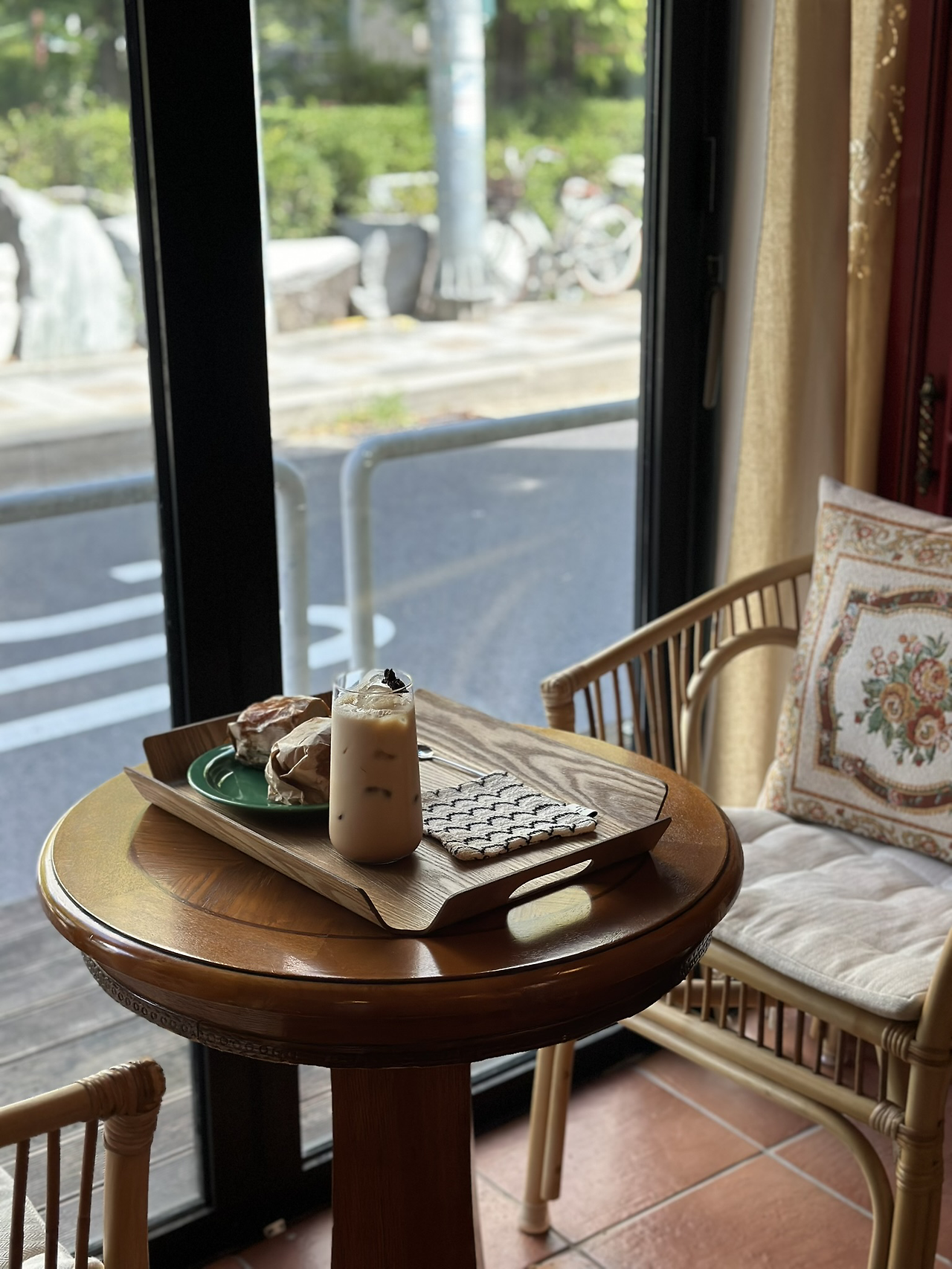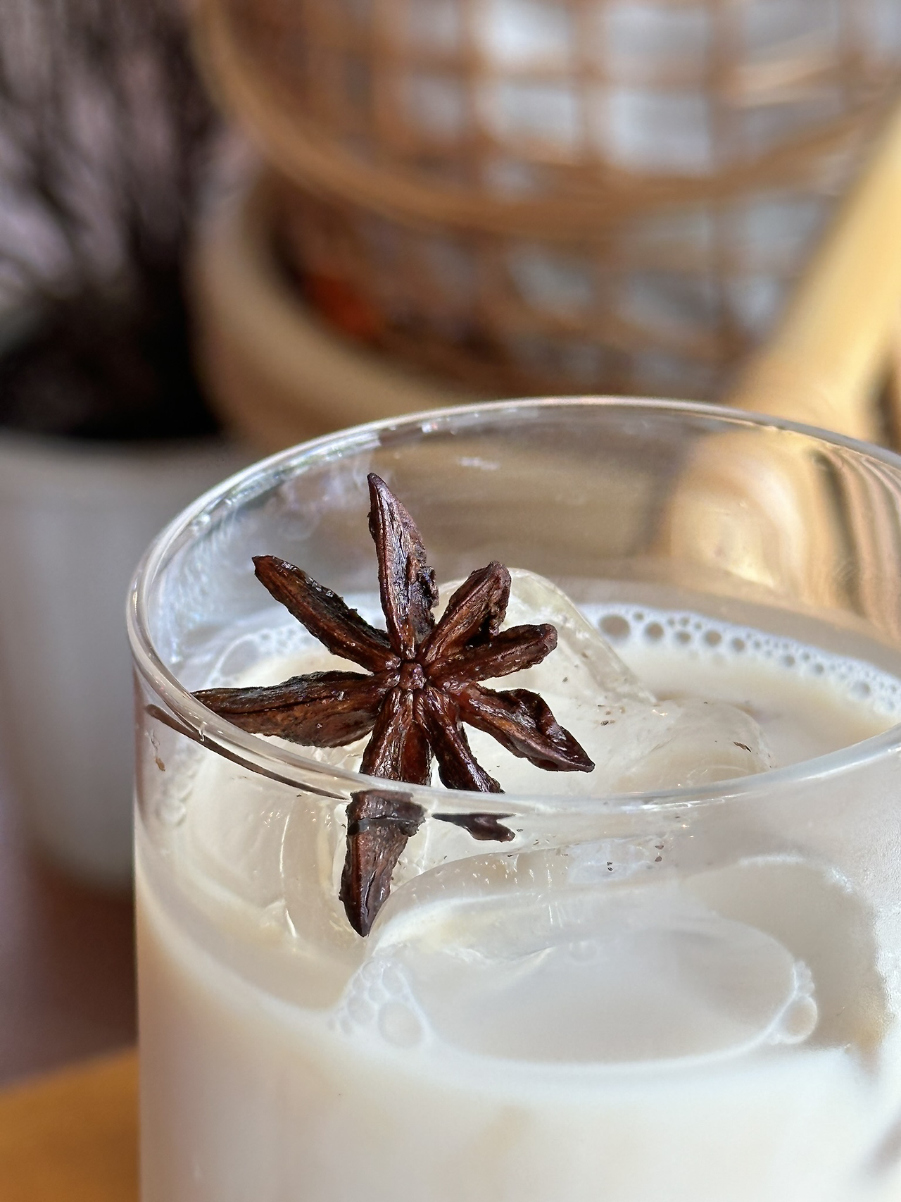 기다란 유리병에 담겨 나온 톡톡짜이는 귀여운 팔각이 위에 올라갔는데, 이국적인 팔각향이 은은한 홍차향과 잘 어울렸다. 목도 말랐겠다, 한 모금 쭉 들이키니 진한 단 맛이 느껴졌다.