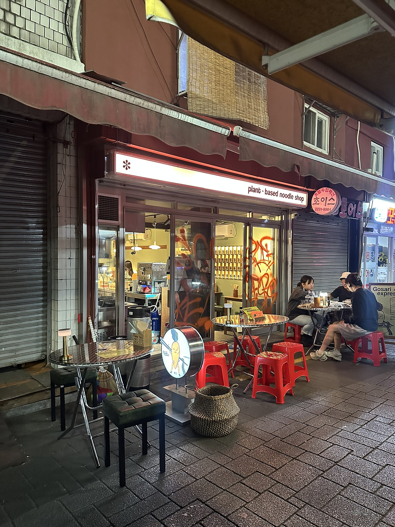 최근까지도 핫한 동네 신당, 그곳에 있는 채식 레스토랑 <고사리 익스프레스>는 살짝 의아했습니다. 한식 위주의 노포 식당이 많은 신당 골목에 <고사리 익스프레스>라는 채식 식당이 덩그러니 불을 밝히고 있어서였던 것 같아요. 조금은 어수선한 분위기였지만 손님으로 가게 안이 꽉 차있어 기대가 컸습니다. 메뉴는 많지 않아 제가 생각하는 맛집의 기준에 부합했고요. 고사리 들깨 비빔면 맛에 한 번 놀라고 고사리 누들 떡볶이에 두 번 놀랐어요. 제일 맛있게 먹었던 음식은 아무래도 고사리 누들 떡볶이였던 것 같습니다. 제주의 우진해장국과는 또 다른 맛의 고사리 요리였고, 이런 채식 요리라면 매일 먹을 수 있을 것 같았습니다. 떡볶이 밀키트를 판매하고 있는 걸 보니 이 집의 시그니처 음식인 것 같아요. 신당은 즉석 떡볶이로도 유명하지만 아마도 머지않아 이 고사리 누들 떡볶이가 신당의 유명인사가 될 것 같은 강한 예감이 듭니다.