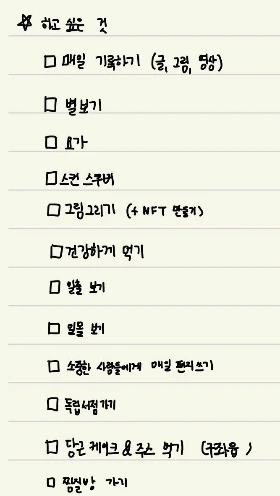 제주도까지 가서 해야 하나 싶은 일들이 적혀 나갔지만 나로서는 서울에서는 도저히 마음의 여유가 생기지 않아 제주도가 아니면 할 수 없는 일들이었다.