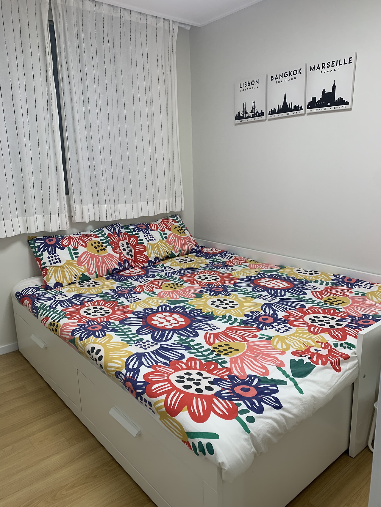 내가 지내고 있는 이 숙소는 '제주도 한 달 살이라면 감성 숙소지'를 외치며 찾게 된 곳인데, 21평가량 되는, 혼자 묶기에는 조금 넓은 투룸이다. 사진으로 봤을 때 깔끔한 인테리어에 식기류부터 청소기까지 없는 것 빼고는 다 갖춰져 있어 제주에서 한 달 동안 머물 곳으로 낙점되었다.