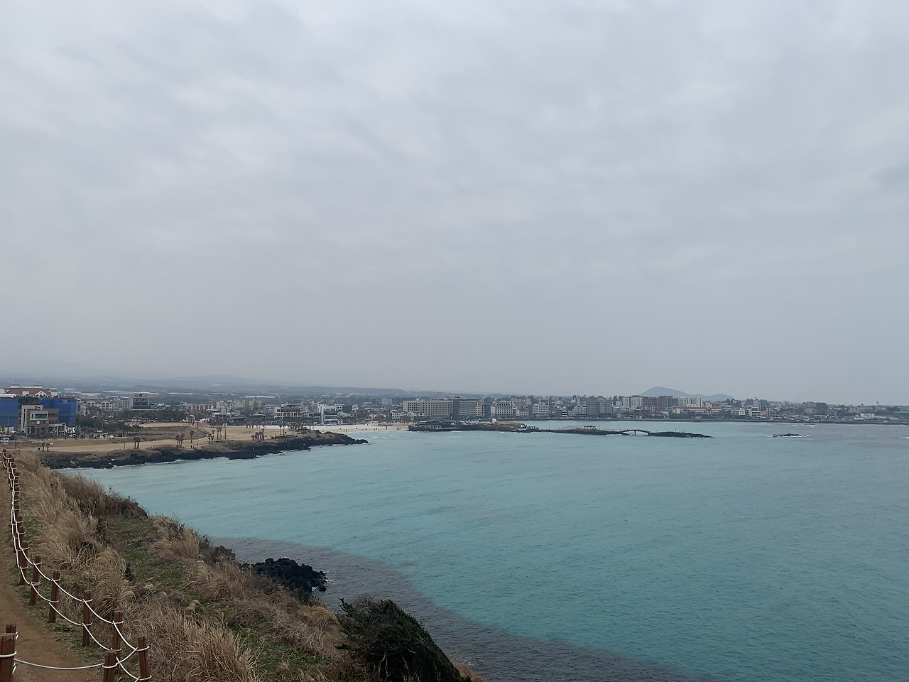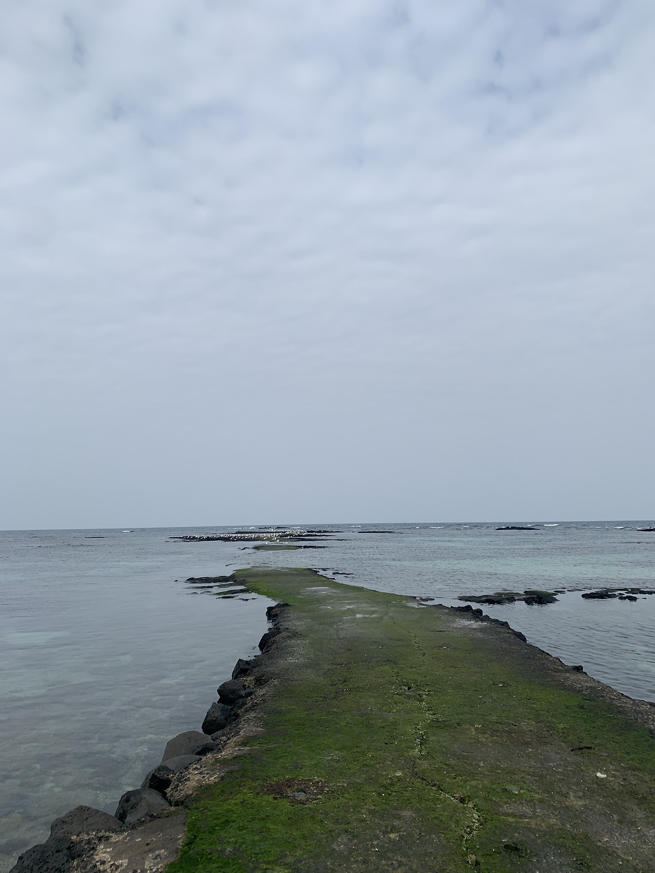 그렇게 함덕에서 소기의 목적을 달성한 우리는 미리 찾아본 음식점에서 칼국수를 먹고 김녕으로 향했다. 김녕 해변에서는 혼자라면 절대 가보지 않았을, sns에서 유명한 사진 스팟인 바다로 난 길에 가 진귀한 풍경을 눈과 휴대폰에 담았다. 또, 나 혼자라면 굳이 회색빛 하늘로 칙칙한, 바람도 많이 불어 돌아다니기에는 어설픈 이 날씨에 가지 않았을 성산일출봉에서 멋진 카페를 발견하고 그곳에서 따뜻하고 맛있는 한라봉차를 마시며 흐린 날만의 또 다른 모습을 선사하는 성산일출봉을 감상했다.