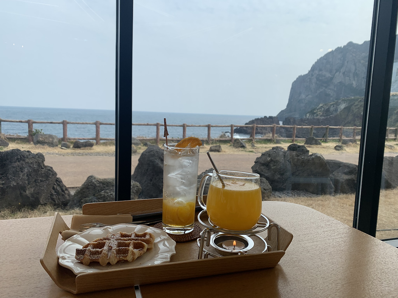 오후 2시, 제주도에 와서 가장 빡빡했던 하루 일정을 마치고 성산일출봉이 보이는 카페 <Cafe The Light>의 널찍한 소파에 앉아 있으니 오늘 할 일을 다 해냈다는 안도감이 들었다. 짧은 휴가를 맞이해 제주도에 온 친구 미선이가 가고 싶어 하던 곳을 꼭 다 가게 해주리라고 생각했던 터라 스스로가 대견하게도 느껴졌다.