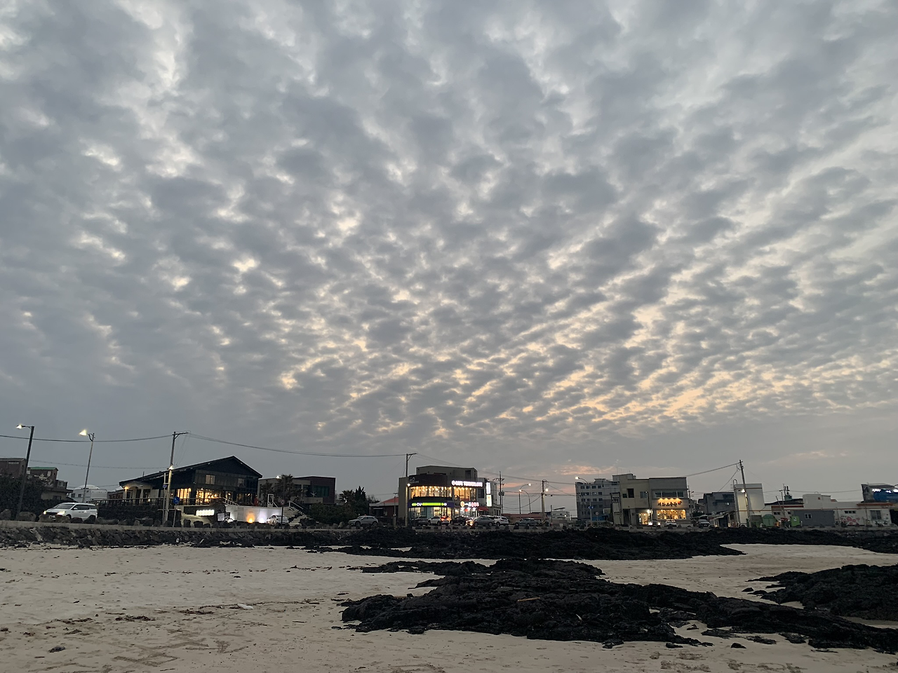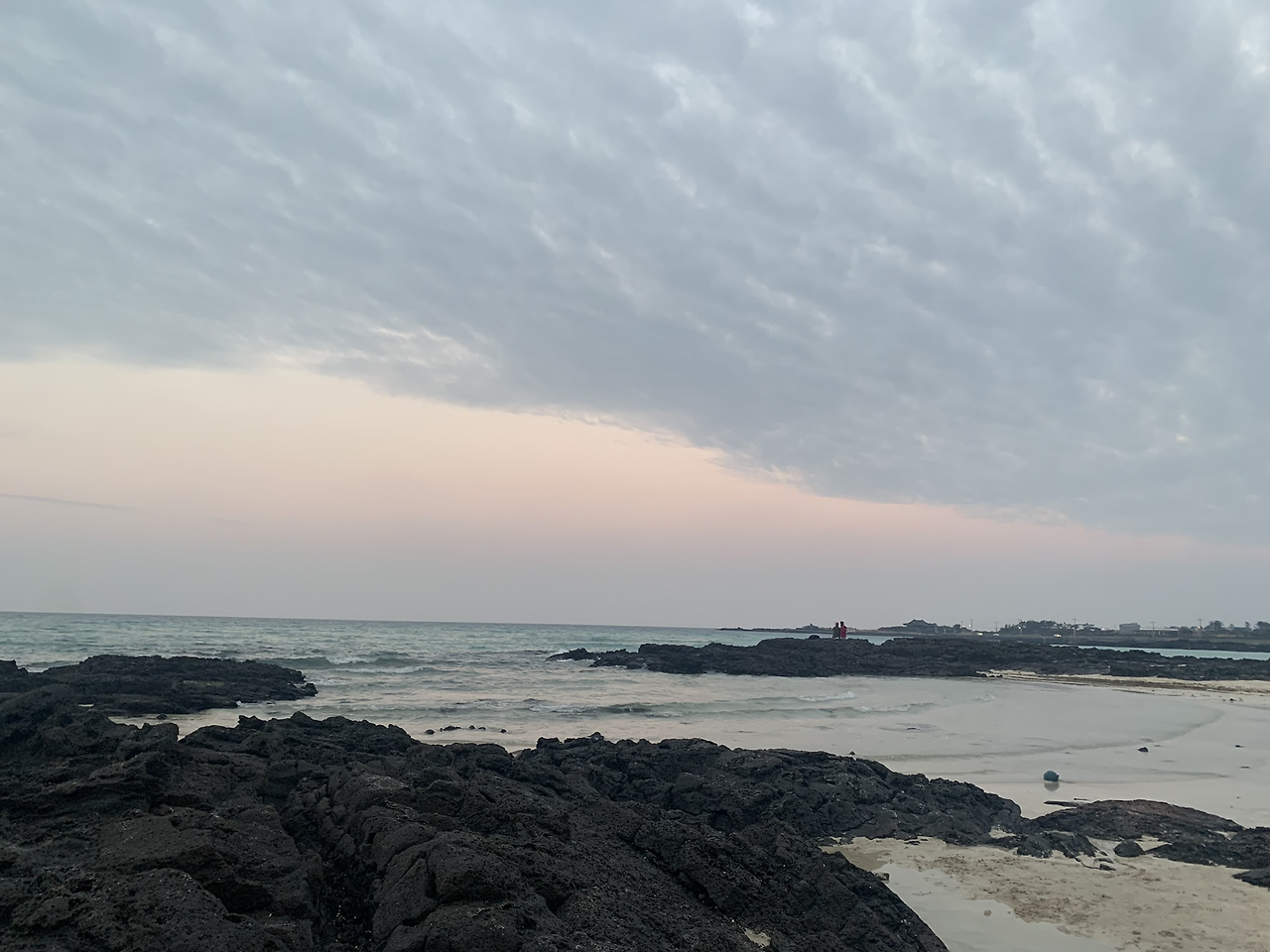 투명한 세화 바다와 구름으로 뒤덮여 모습은 보이지 않더라도 그 붉은빛은 숨길 수 없는 해가 만들어 내는 하늘을 보고 미선이는 탄성을 질렀다.