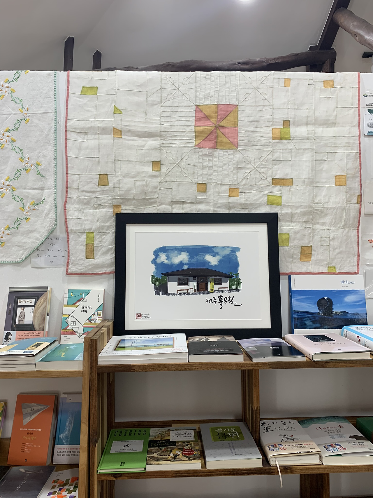 <작별하지 않는다>. 제주에 오니 한강 작가가 쓴 제주 4.3 사건에 관한 소설, <작별하지 않는다>를 읽고 싶었었다. 지난번 평대 <달책빵>에서도 책을 찾아보려 했지만 발견하지 못해 제주에 오기로 했던 미선이나 얼마 뒤 제주에 올 엄마와 이모들에게 부탁해야 하나 싶었는데, 이미 읽으려고 가져온 책이 두 권 있기도 했고 돌아갈 때 짐을 늘리고 싶지 않아 우연히 그 책을 발견하는 게 아니라면 굳이 구해 읽지는 말아야겠다고 마음먹었었다. 만남을 기대하지 않던 책방에서 바라던 책을 찾으니 운명이다 싶어 얼른 그 책을 책꽂이에서 꺼내 들었다.