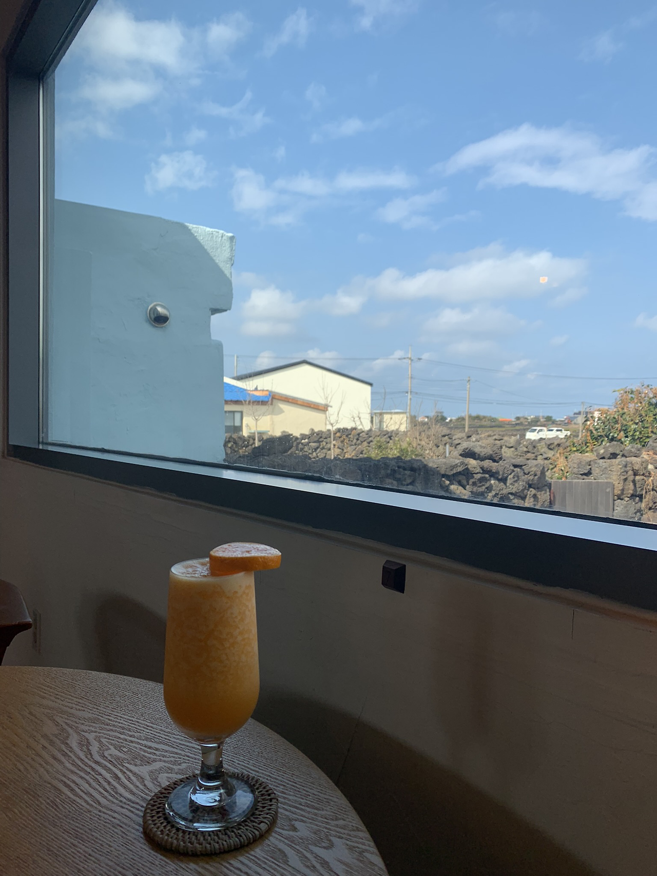 음식을 다 먹을 때쯤 하늘이 파랗게 갰다. 창가 앞 테이블에 앉아 바깥 풍경을 바라보고 있자니 이대로 돌아가기 아쉽다는 생각이 들어 오렌지 생과일주스를 한 잔 주문하고 엉덩이를 의자에 더 붙였다 가기로 했다.