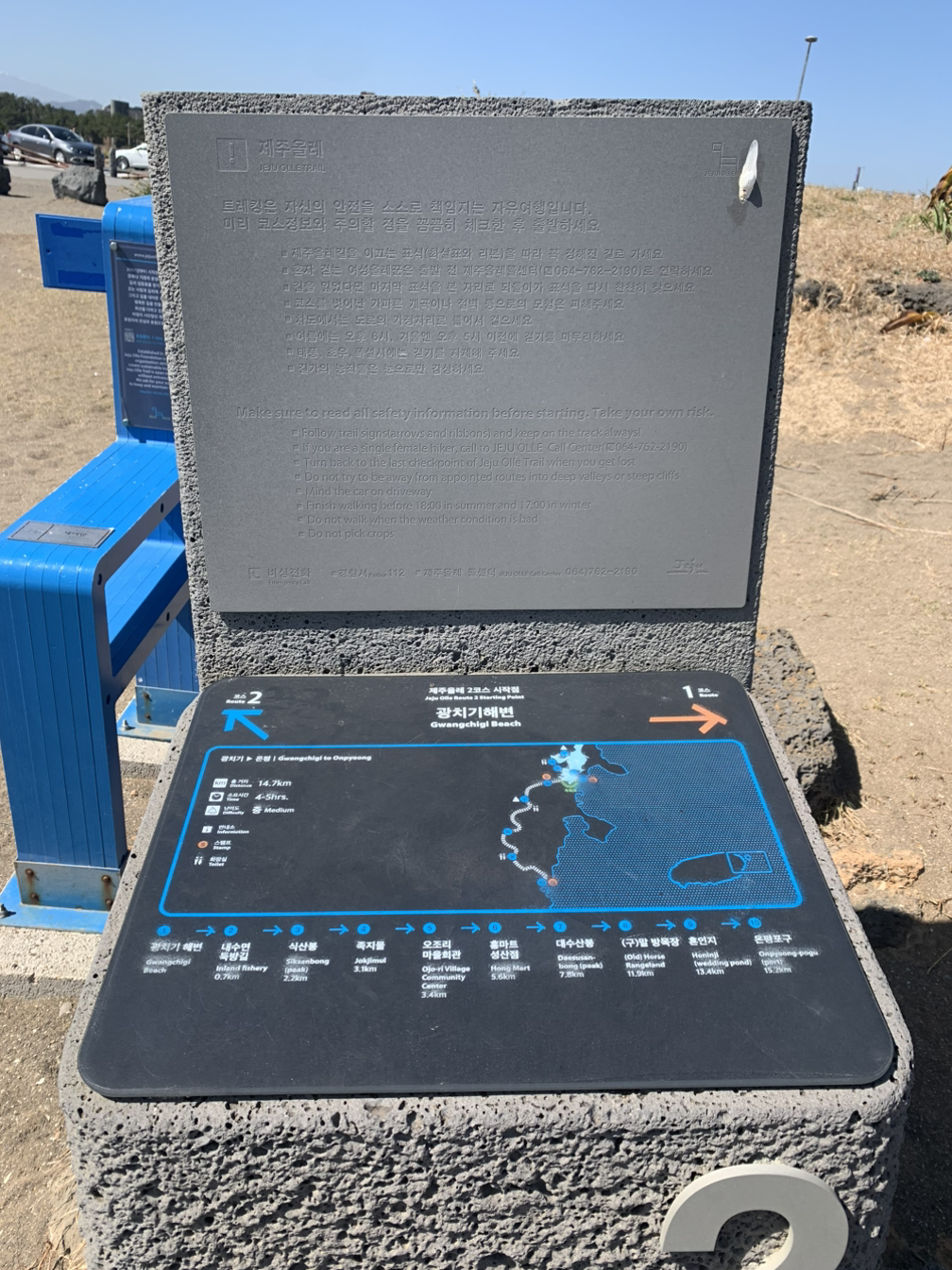 오늘은 올레길을 걸어볼 작정이었다. 호텔 위치가 올레길 1코스 중간(굳이 따지자면 끝나는 지점에 더 가깝다.)에 있어, 호텔에서부터 광치기 해변까지 1코스 후반부를 걷고, 괜찮으면 2코스도 걸어보기로 했다.
