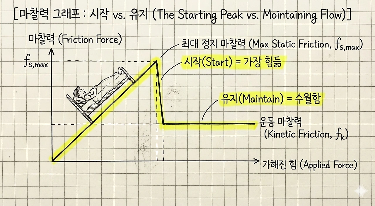 그래프가 꺾이는 순간, 마찰력은 사라지고 관성이 당신을 밀어줍니다.