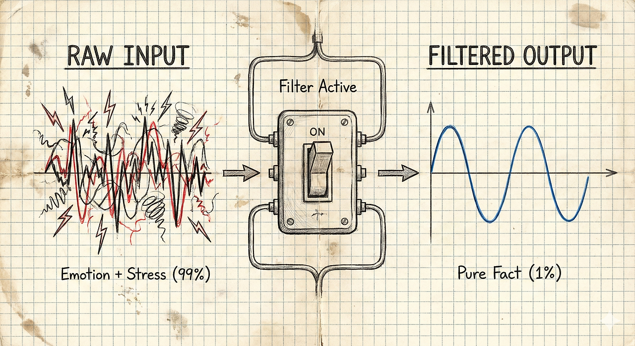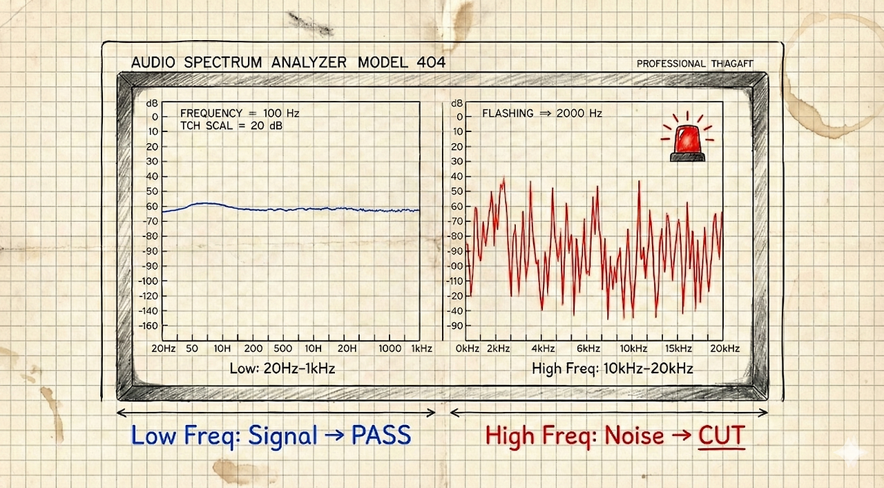 * 100Hz 저주파 대역 (팩트 = Signal) : 묵직한 정보. "수치가 틀렸다", "논리가 부족하다".