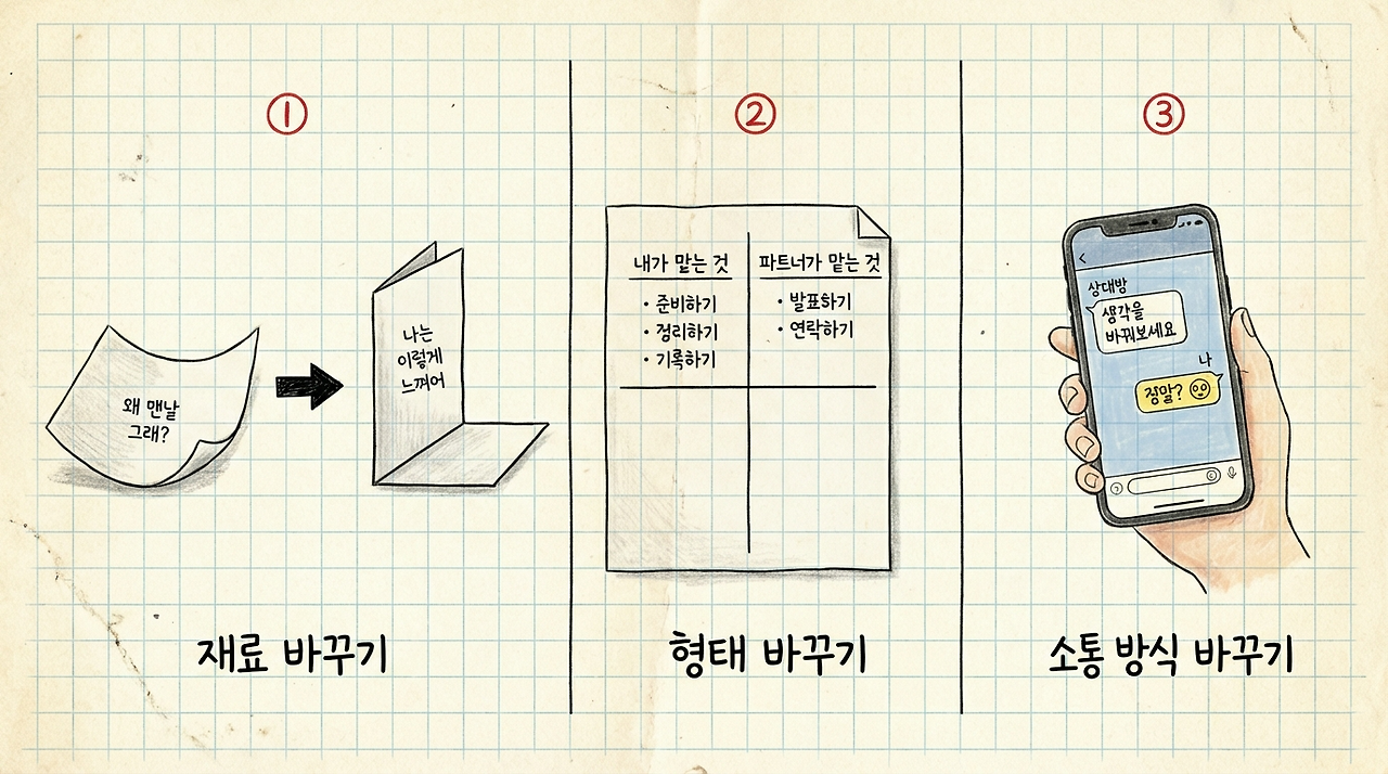 말도 같습니다. 대화에서 '왜'를 빼고 '나는'을 넣으면 관계를 버티는 힘이 완전히 달라집니다.