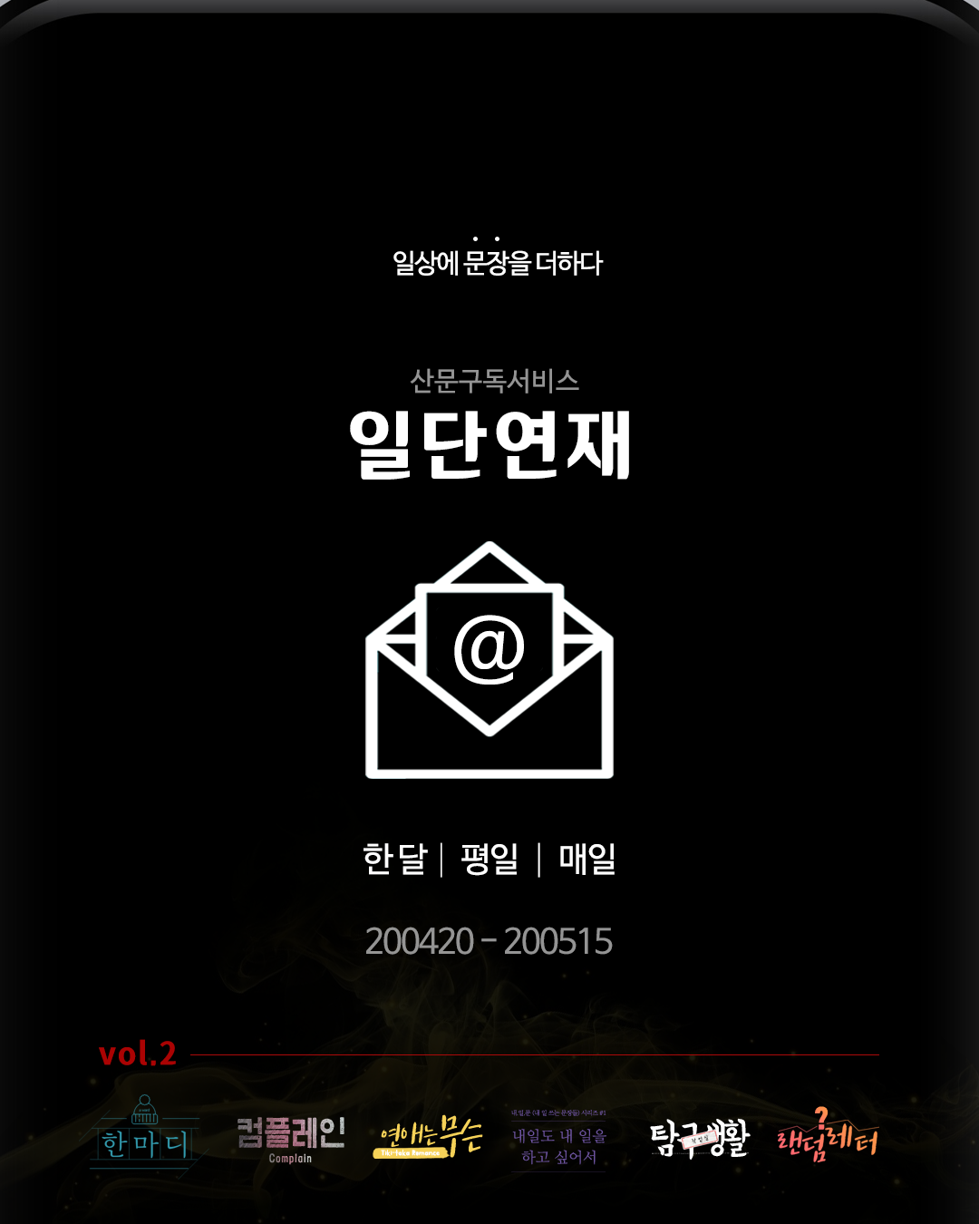안녕하세요. 이학민입니다. 산문 구독 서비스 <일단연재>가 2호로 돌아왔습니다. 1호보다 나은 2호를 목표로 치열하게 준비했습니다. 많은 성원 부탁드립니다.