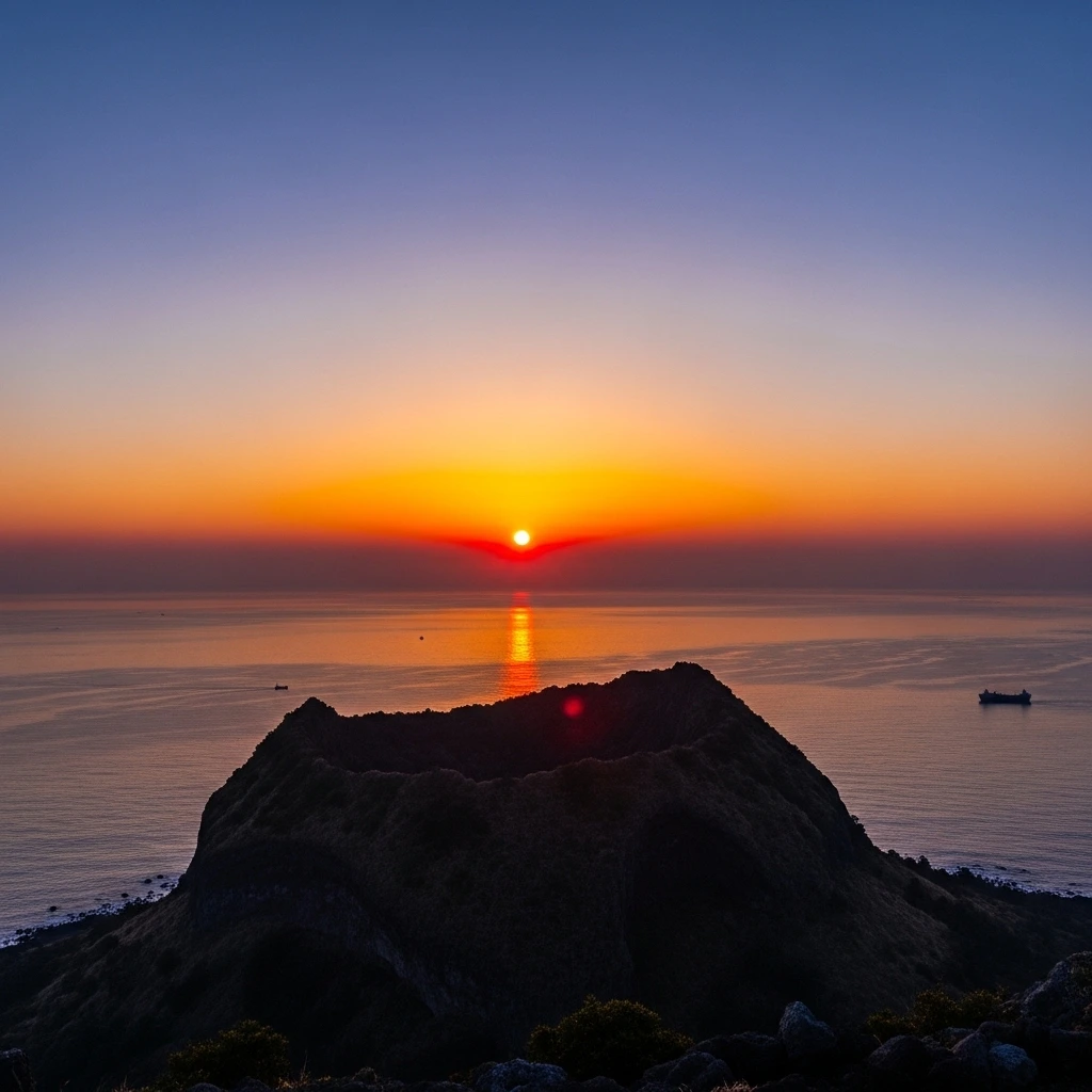 정상에 도착했을 때, 동쪽 하늘이 서서히 밝아오고 있었다. 수평선 너머로 붉은 기운이 스며들기 시작하더니, 마침내 태양의 첫 모습이 바다 위로 떠올랐다. 그 순간, 모든 사람들이 일제히 탄성을 터뜨렸다. 나 역시 모르게 눈물이 핑 돌았다.