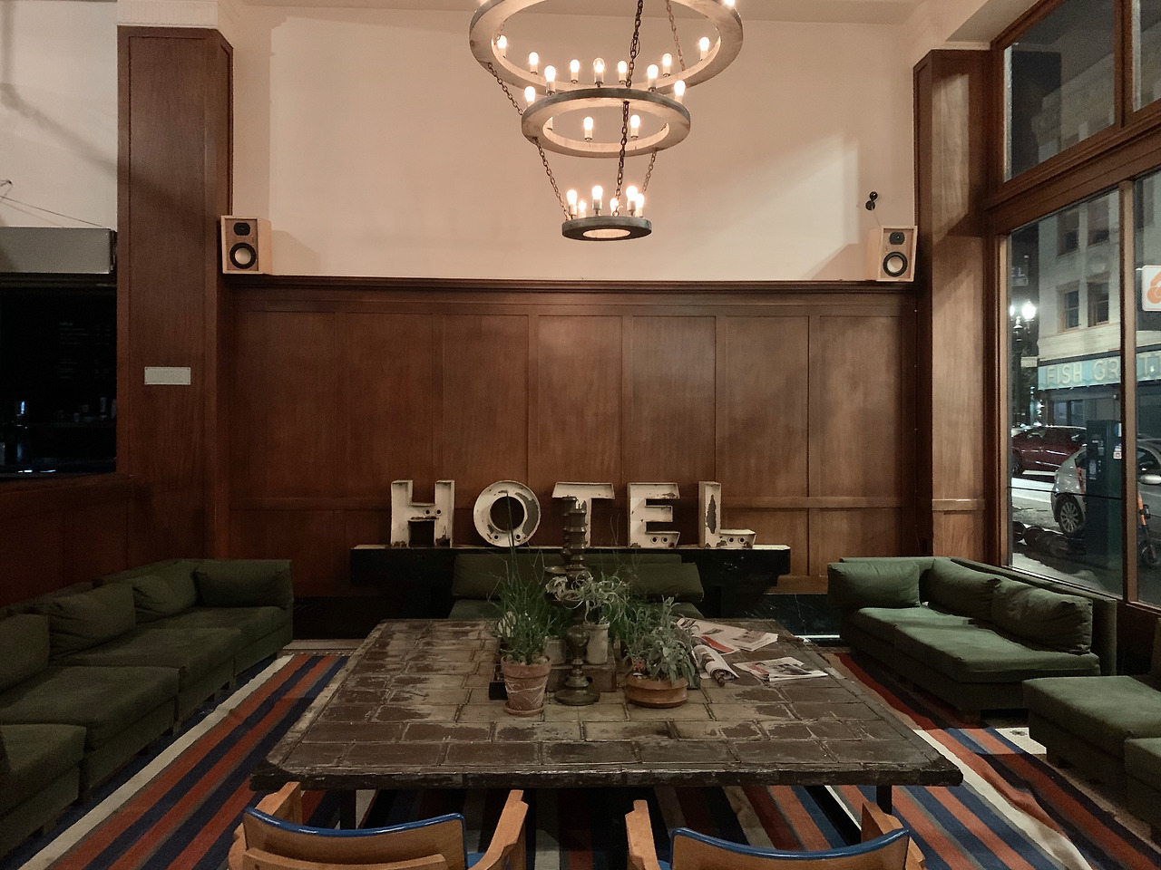 포틀랜드와 시애틀의 에이스 호텔 첫 인상은 각자 달랐다. 포틀랜드의 첫인상은 말그대로 힙한 인상이었다. 네온 사인과 샹들리에가 달린 우드 소재가 가득한 로비가 인상적이었던 포틀랜드점은 말그대로 힙한 느낌이었고, 입구조차 찾기 힘들고 좁은 계단으로 캐리어를 들고 올라가야 만날 수 있는 시애틀점은 호텔 본연의 기능에만 충실한 느낌이었다. 첫인상은 포틀랜드점이 더 좋았지만, 힘들게 캐리어를 들고 올라선 시애틀점에서는 낮게 울리는 재즈가 반기는 느낌도 꽤 좋았다.