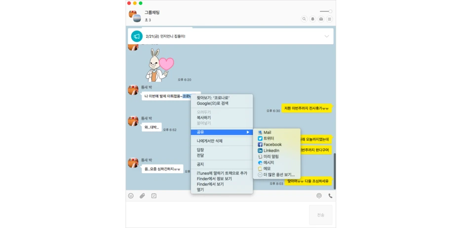 서비스 사용자가 아닌 기획자의 입장이 되어 서비스를 바라볼 때 익숙하던 기능이 갑자기 낯설어 보일 때가 있다. 메신저에서 빈번하게 사용하던 '공유' 기능이 그 중 하나였다. 팀 회의에서 해당 기능 스펙에 대해 이야기 하던 중의 일이다.
