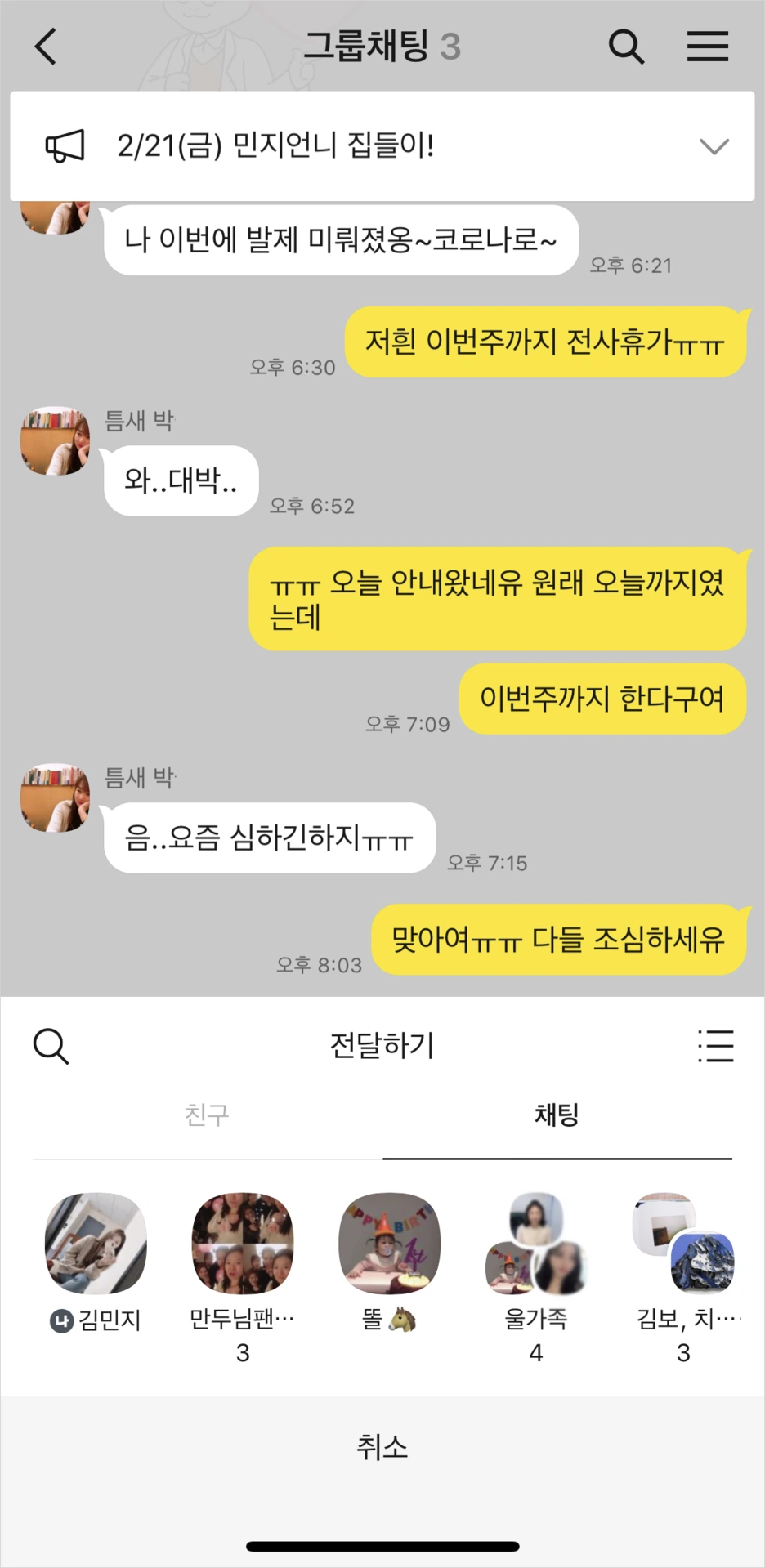"[공유] 기능을 [전달]로 변경하는 것은 어떨까요? [공유]는 코멘트 작성 등 편집이 가능할 것 같은 느낌인데, [전달]은 편집없이 바로 전하는 느낌이 들어서요"