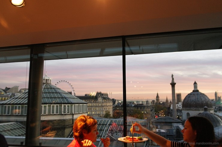 이 곳은 내셔널 갤러리 옆 건물에 있는 Searcys라는 레스토랑. 오후 5시까지는 애프터눈티를 먹을 수 있다고 해서 간 곳이었고, 음식 맛은 사실 쏘쏘였으나 뷰가 환상적이었다. 영화 클로저에 나왔던 곳이라 하더라. 어쩐지 분위기가 너무 좋아서 한참을 셔터를 눌러댔다. 혼자 가기에 금액이 꽤 비쌌는데 민박에서 좋은 동행들을 만나 정말 예쁘게 지는 노을을 보고 있던 시간이 너무 행복했다. 멋진 런던의 풍경을 볼 겸 여유 시간을 갖고 싶다면 이 곳을 추천하고 싶다.
