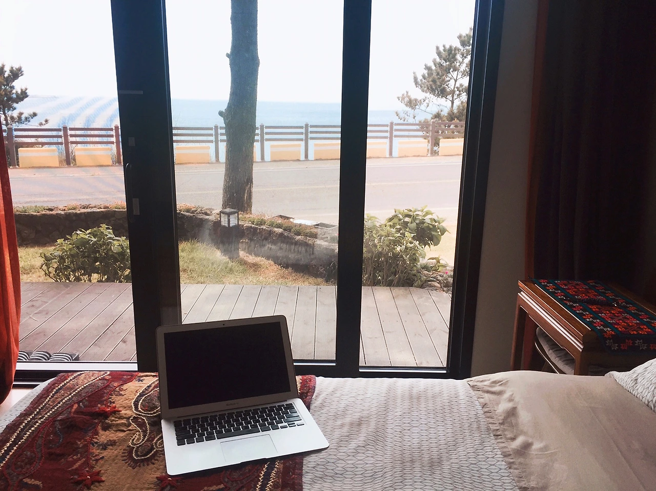 바다가 보이는 애월의 에어비앤비. 에어비앤비는 민박보다 더 큰 금액을 감당해야하기 때문에 고민을 했지만, 혼자만의 시간을 갖고자 해서 예약한 곳. 그리고 애월바다와 마주한 방을 보는데 정말 우와! 하면서 좋아했다. 1층이 조금 더 싸서 예약을 했는데 1층은 너무 도로앞이라 2층이 조금 더 좋을 것 같은 곳. 소품이 아기자기하고 여기저기 인테리어를 신경쓰신 티가 난다. 무엇보다도 사장님 부부가 너무 친절하셔서, 첫날 혼자 있는데 제대로 끼니를 때우지 못하고 차가 없어 불편한 것을 신경써주시고 태워주셔서 너무 감사했던 곳. 무엇보다 이곳 아침이 너무 맛있다. 사모님께서 신경써서 브런치식으로 차려주시는 아침은 정말 일품! 제주에서 휴식을 취하고 싶다면 이곳을 추천하고 싶다. 단, 이곳은 주변에 시설이 거의 아무것도 없으니 차가 있을 경우에만 추천한다!