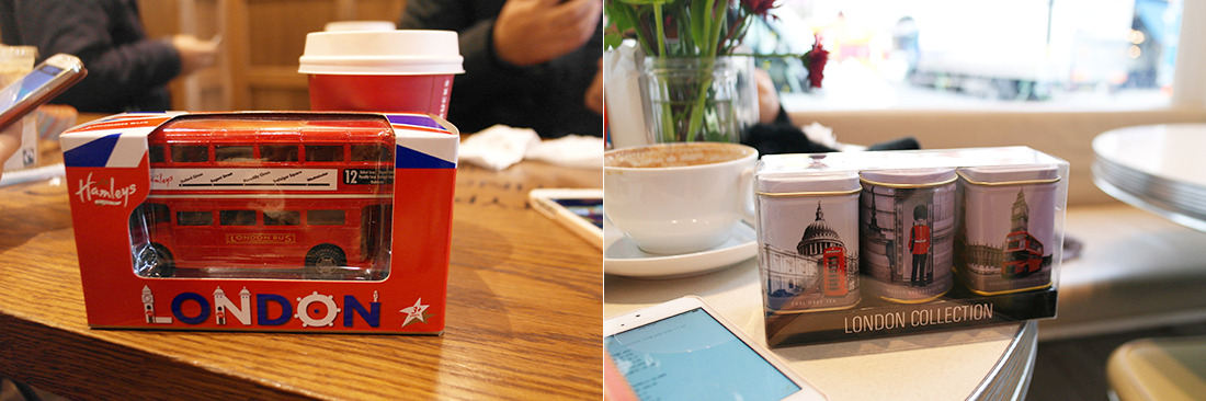 '런던'하면 떠오르는 것은 역시 빨간 2층 버스였다. 런던을 처음 딱 도착했을 때 곳곳에 보이는 빨간 2층 버스는 나를 런던에 왔구나,를 실감하게 해주는 요소였고, 조금은 우중충한 런던의 날씨는 그러한 런던의 로망을 더해주었다. 그러던 중 들렸던 옥스퍼드 스트리트의 햄리스 장난감 가게. 워낙 레고도 좋아하고 장난감을 좋아하는 내게, 여러 층 가득이 채운 장난감은 정말 최고의 구경거리였고 그중 빨간 2층 버스 장난감을 득템해버렸다! 지금도 책상 위에 놓여져 있는 저 장난감은 힘든 내게 종종 그때의 즐거움을 떠올리게 해주는 힘이 되주는 요소가 되고 있다. 그리고 런던에서 가끔 발견할 수 있는 런던 Tea 콜렉션. 사실 Tea 자체를 좋아한다기보다는 케이스가 너무 예뻐서 구입한 Tea 세트였다. 흑백과 붉은색의 조화가 너무 예뻐, 케이스만 보고 덜컥 사버린. 개인적으로 런던을 정말 잘 나타내주는 요소들이 아니었나, 라는 생각이 들던 기념품들이었다.