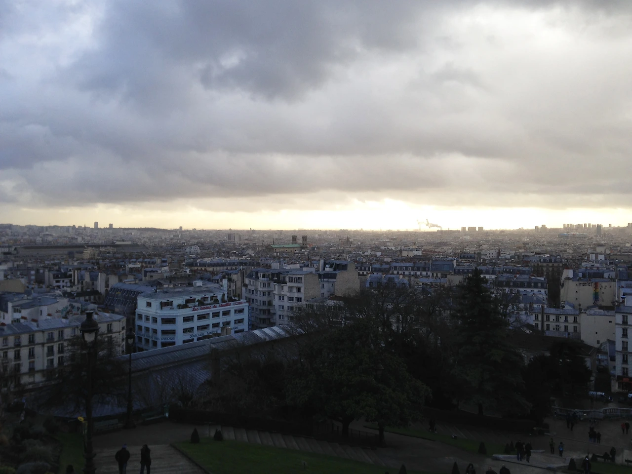 내게 파리=몽마르뜨언덕과 에펠탑 이었다. 그렇기 때문에 꼭 봐야만 했던 에펠탑과 몽마르뜨 언덕. 팔찌 채우는 흑인아저씨들이 많아! 라는 무서운 이야기를 무릅쓰고 뒷길로 아름아름 걸어갔던 이곳. 올라서자마자 보이는 푸른 지붕들이 잔뜩 채워진 파리 시내는 정말 예쁘고 아름다웠다. 파란 하늘이 아니라 아쉬웠지만, 반대로 먹구름이 가득한 몽마르뜨 언덕은, 지금까지도 잊혀지지가 않는다. 너무 아름다웠다. 특히 먹구름 사이로 조금씩 듬성듬성 비치는 햇빛마저도 너무 아름다웠던 순간이었다. 파리에서 잊지 못할 순간 중 하나였던, 몽마르뜨 언덕에서의 먹구름.