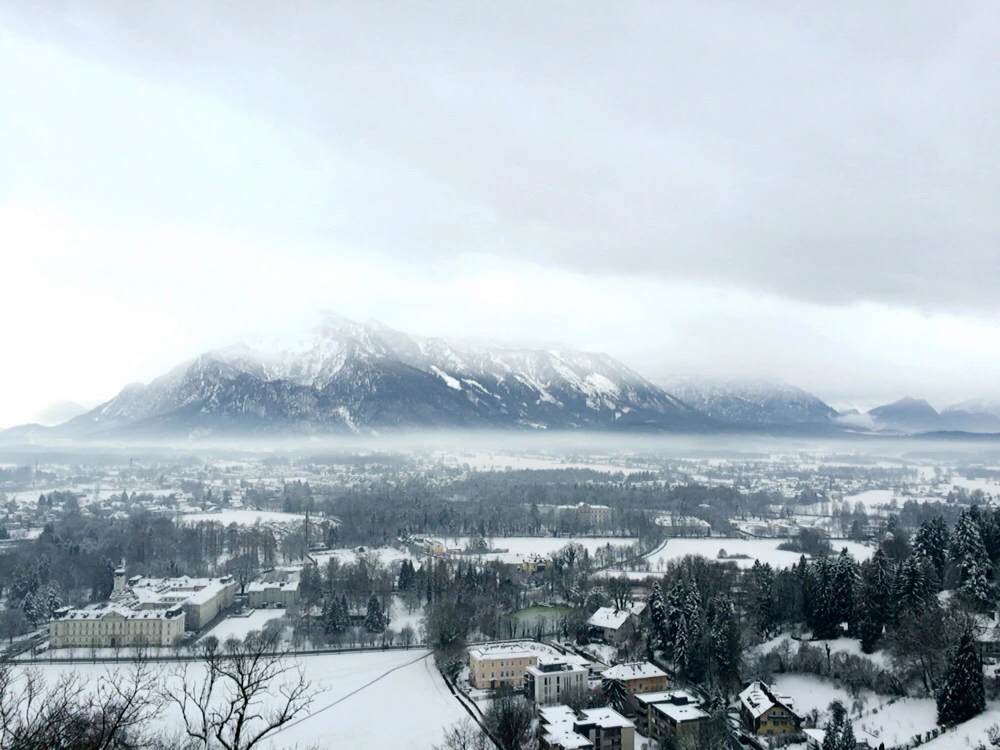 호엔 잘츠부르크성에서 내려다보는 경관이 정말 멋지다고 했다. 잔뜩 기대를 품고 올라섰던 그날, 때마침 오스트리아에 내리자마자 잔뜩 쌓였던 눈이 조금 원망스럽게도 내리기 시작했다. 그렇게 진눈깨비처럼 기분나쁘게 내리던 눈은 잘츠부르크성에 올라선 순간에도 잔뜩 내렸고, 패딩 모자를 덮어써야만 앞이 보일 수 있을 정도였다. 푸른 하늘과 어우러진 경관에 대조된, 심지어 안개까지 잔뜩 낀 잘츠부르크 시내는 조금은 실망스러웠지만 한편으로는 또 언제 이런 경관을 볼 수 있을까, 라는 생각마저 들게 만들었다. 조금은 아쉬웠지만, 그래도 스위스같은 분위기를 잔뜩 내뿜었던 잘츠부르크에서의 추억.