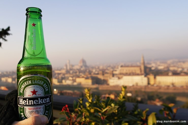피렌체에서 좋았던 곳 중 하나인 미켈란젤로 언덕에서 동행들을 기다리고 있었는데, 한 아저씨가 길거리 공연으로 스티비 원더의 Isn't she lovely를 부르고 계셨다. 맥주를 마시며 혼자 그 공연을 보고 있는데 눈앞에 보여지는 피렌체 시내에 노을이 내려앉았을때 너무나 행복함이 느껴졌다. 맥주 한병 마시고 혼자 알딸딸해져서 그 기분이 더해졌던 우스운 추억이 새록새록.