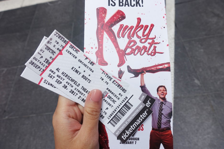 로터리가 꽤 쉽게 될 거라고 했던 킨키부츠 마저도 한번도 로터리 당첨이 되지 않았다. 아쉬워 하던 찰나에 여행 첫 날 날씨가 꾸물꾸물하고 비가 오락가락해서 뮤지컬을 볼까 싶어 tkts에 가서 당일 표를 구매했다. 꽤 좋은 오케스트라석 자리 표를 50% 할인된 금액으로 구입할 수 있었다.