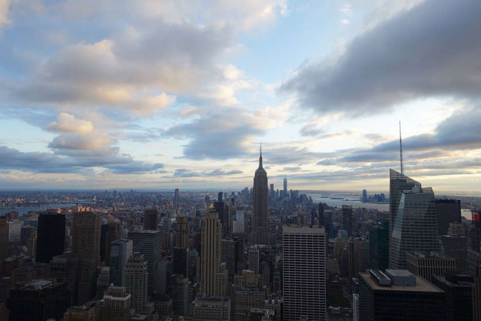 역시 나의 여행에서 가장 빠질 수 없는 정준일의 음악. 그리고 그의 로맨틱한 곡이 참 잘 어울렸던, 하루의 피곤이 싹 가시게 만들던 풍경은 바로 탑오브더락 이었다. 뉴욕에서 유명한 전망대인 탑오브더락을 가는 날은 날씨가 꽤 추웠다. 오전부터 비가 오락가락했고, 하늘은 흐렸으며, 바람도 꽤 불었다. 이렇게 비가 왔던 날 전망대를 올라가도 될까 주변에서 말은 많았지만, 오히려 나는 비가 막 갠 직후의 구름이 한껏 있는 오묘한 분위기의 하늘을 좋아하기 때문에 일정을 감행했다. 그리고 그 오묘한 하늘과 귀에서 들리던 정준일의 '크리스마스메리, Merry' 조합이 딱 맞아 떨어지는 순간은 하루의 피곤이 싹 가시게 만들었다. 석양이 막 지기 시작할 때부터 어두워지는 순간까지가 가장 예쁘고 음악이 잘 어울렸던 순간.