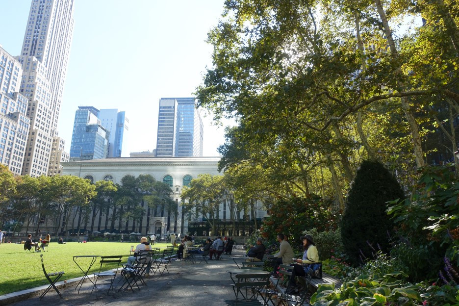 뉴욕에서 가장 좋았던 곳을 꼽아보라하면, 바로 브라이언트 파크다. 뉴욕에서 상징성 높은 센트럴 파크도, 너무나 좋아하는 영화 '비긴어게인'의 배경지인 워싱턴 스퀘어 파크도 그 기대를 충족시켜주지 못했지만, 브라이언트 파크만은 기대가 덜 했어서 그런지 생각보다 너무 좋아 일정 중 낮과 밤 모두를 넘나들며 세 번을 들락거렸다. 밤의 풍경도, 낮의 풍경도 너무 좋았던 이곳. 노리플라이의 '권순관'의 애절한 목소리가, 이 잔잔하고 평화로운 분위기와 한껏 어울려 당시 읽고 있던 책에 몰입도 잘 하게 만들어주고, 마시던 커피도 더욱 만들어주어 기억에 남는다.