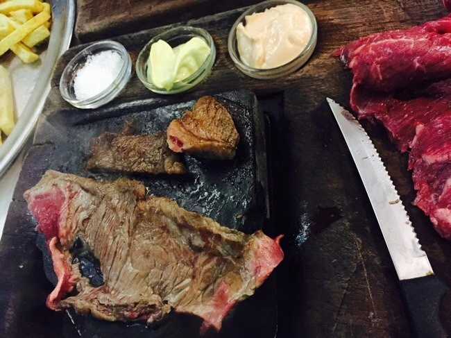 리스본에 도착했을 떄 숙소 사장님께서 추천해주신 돌판위의 소고기집. 이 금액에 소고기를 먹기 힘들거라는 추천에 갔는데 정말 거짓말안하고 함께 식당에 앉은 총 다섯 테이블이 한국인들이었다. '뭐야 한국인들에게만 유명한 곳인가?' 했는데 한입먹어보니 그런 생각이 싹 가셨던 맛집. 시간대가 7시 되자마자 였기 떄문에 그런 상황이었고 늦은 시간에는 현지인들도 많이 올만큼 유명한 곳이라 한다. 개인적으로 두꺼운 고기보다 얇은 삐까냐를 추천. 두꺼운건 너무 두꺼워서 먹다보면 텁텁해질 수 있다. 돌판 위에 직접 구워먹는 소고기, 추천:) 단 고기 냄새가 굉장히 많이 배어나니, 단단한 각오와 함께!