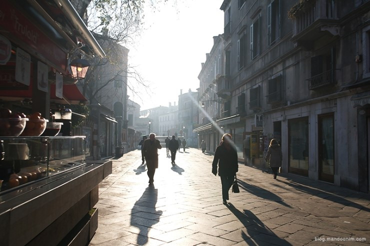 아침 햇살이 비치던 시간에, 이탈리아 베네치아에서 나에게는 여행인 일정이, 그들에겐 출근길이었던 순간.