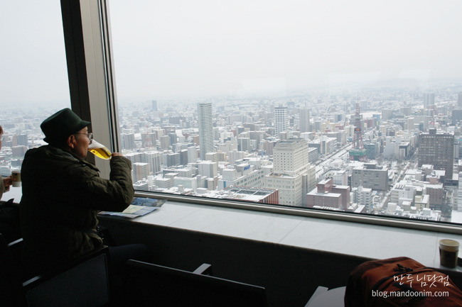 삿포로 JR타워에서, 혼자 여유롭게 맥주를 마시며 삿포로 시내를 구경하시던 멋쟁이 할아버지