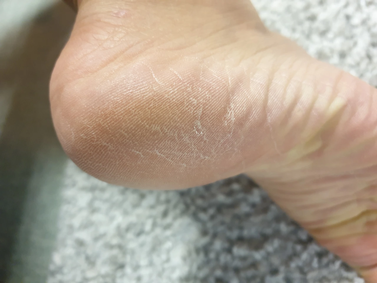 나의 갈라진 뒤꿈치와 대비되는 발가락
