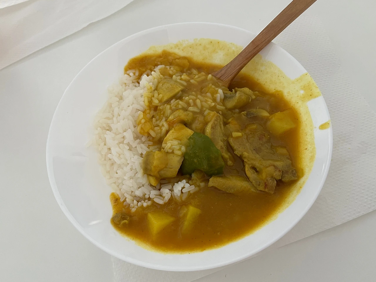 카레와 카레가 아닌 것의 사이의 맛이었다. 카레향은 제법 나는데 맛은 향에 비해 약하고 순한 맛이라고나 할까. 묘하게 향과 맛이 인지부조화가 되는 맛이었다. 이건 맛이 있는 것도 아니고 맛이 없는 것도 아니었다. 몇 번을 다시 맛을 봐도 많은 차이가 났다. 우리가 만든 카레는 한국에서 파는 카레가루로 만든 것과 다르게 묽었다. (한국에서 파는 카레에는 전분이 들어간다.) 또, 이유는 모르겠지만 치킨스톡을 넣어 완성한 카레에서 시큼한 맛이 났다.