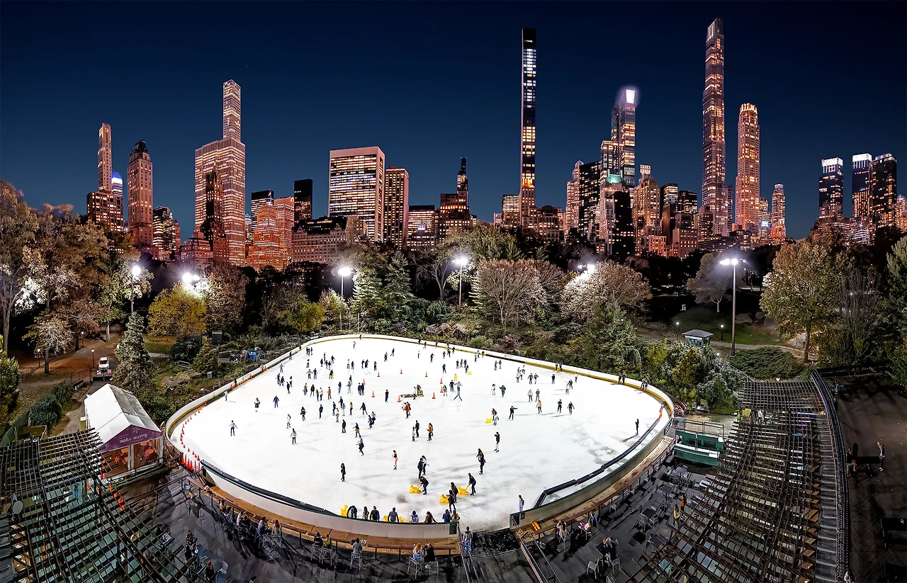 Wollman Rink는 겨울철 뉴욕을 대표하는 명소로, 뉴욕의 겨울을 가장 로맨틱하게 즐길 수 있는 공간 중 하나다. 10월 말부터 3월 초까지 야외 아이스링크로 운영되며, 맨해튼 고층빌딩을 배경으로 스케이팅을 즐기는 경험은 영화 속 한 장면처럼 인상 깊다. 특히 연말 시즌에는 트리 장식과 조명이 어우러져 분위기가 절정에 이르며, 영화 《세렌디피티》에 등장한 장면으로도 널리 알려져 있다.