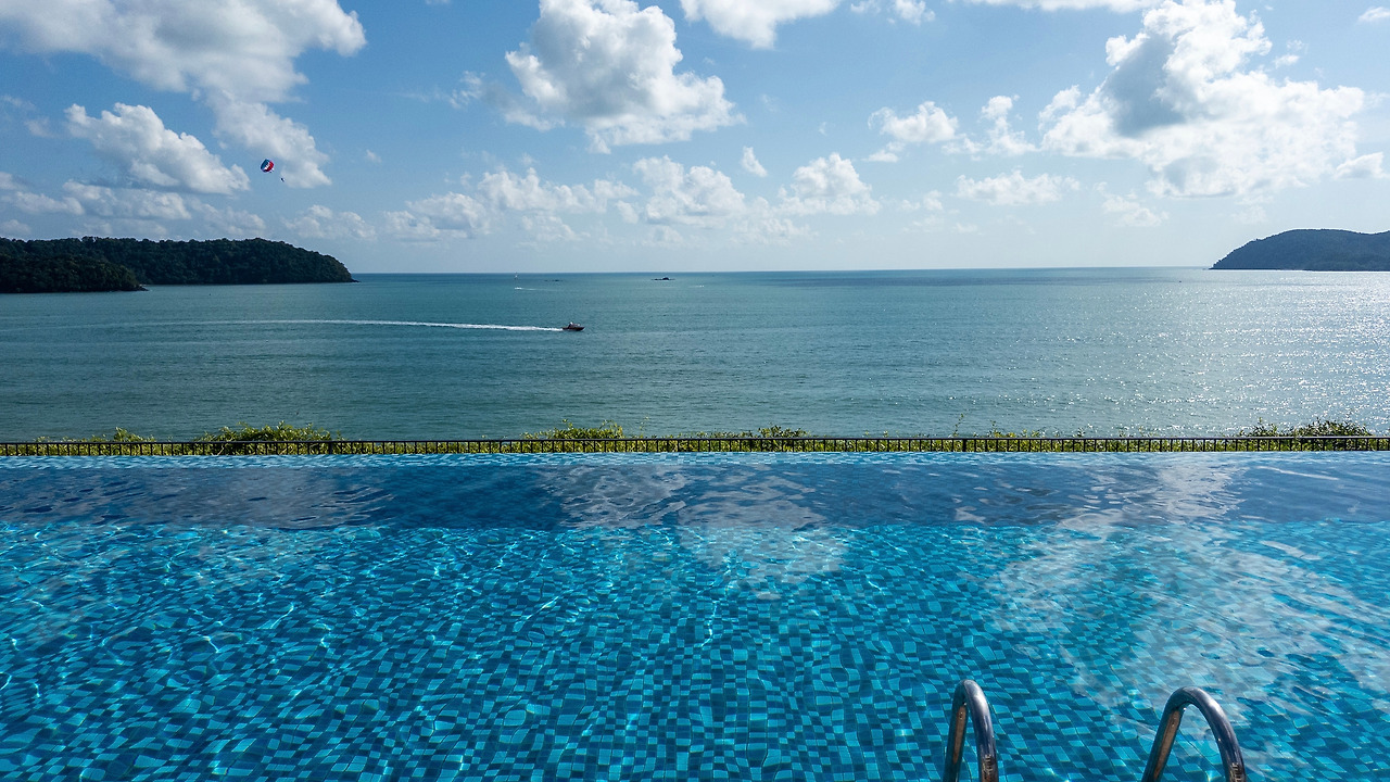 PARKROYAL Langkawi Resort의 수영장은 메인풀과 루프탑 풀 두 곳으로 나뉘며, 각각 성격이 조금 다르다. 메인풀은 가족 단위 투숙객 중심으로 비교적 넓고 개방적인 분위기이며, 루프탑 풀은 성인 전용으로 운영돼 보다 조용하고 여유로운 시간을 보내기에 좋다.
