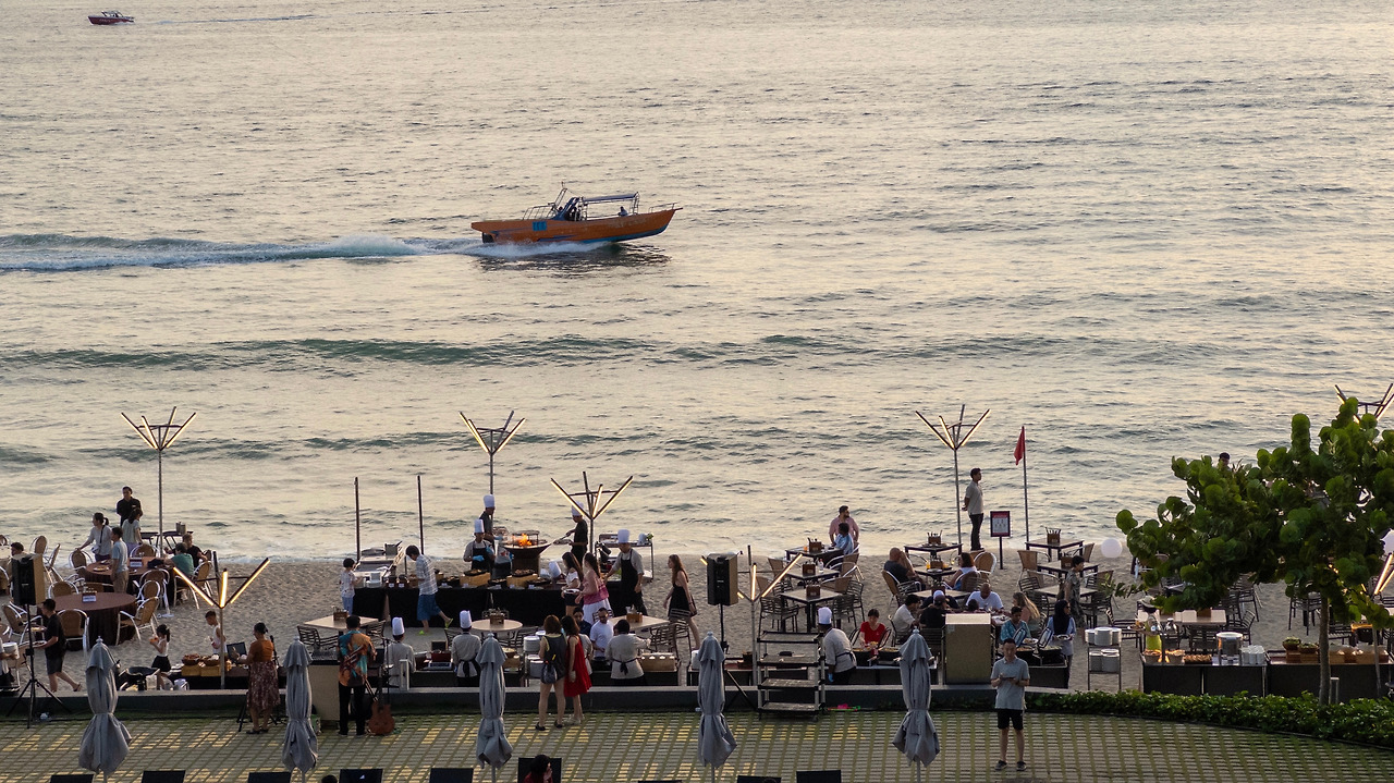 주의할 점은, 리조트 앞 도로는 교통량이 많고 그늘이 적은 편이라 낮 시간대에는 도보 이동이 다소 불편할 수 있다. 해변 산책이나 쇼핑은 오전 일찍 혹은 해 질 무렵으로 계획하는 것이 효율적이다. 한편 리조트 반경 200m 내에는 중국식 해산물 식당들이 밀집해 있다. 대부분 저녁 시간대만 운영하며, 가격 대비 음식 양과 신선도가 좋아 외식이 필요한 날 무난하게 선택할 수 있는 옵션이다.
