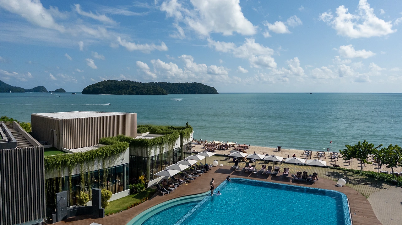 2023년에 문을 연 PARKROYAL Langkawi Resort는 랑카위를 대표하는 신축 5성급 리조트다. 리조트는 체낭 해변 끝자락의 비교적 조용한 구간에 위치해 있다. 공항에서는 차량으로 약 15분 거리이고, 중심 쇼핑 거리까지는 도보 10~15분이면 이동 가능하다. 바로 앞이 해변, 뒤쪽이 메인 도로여서 교통편도 괜찮은 편이다. 주변에는 로컬 식당과 수족관, 쇼핑몰이 가까워 멀리 나가는 일정을 잡지 않고 근처만 둘러봐도 볼거리가 넘친다.